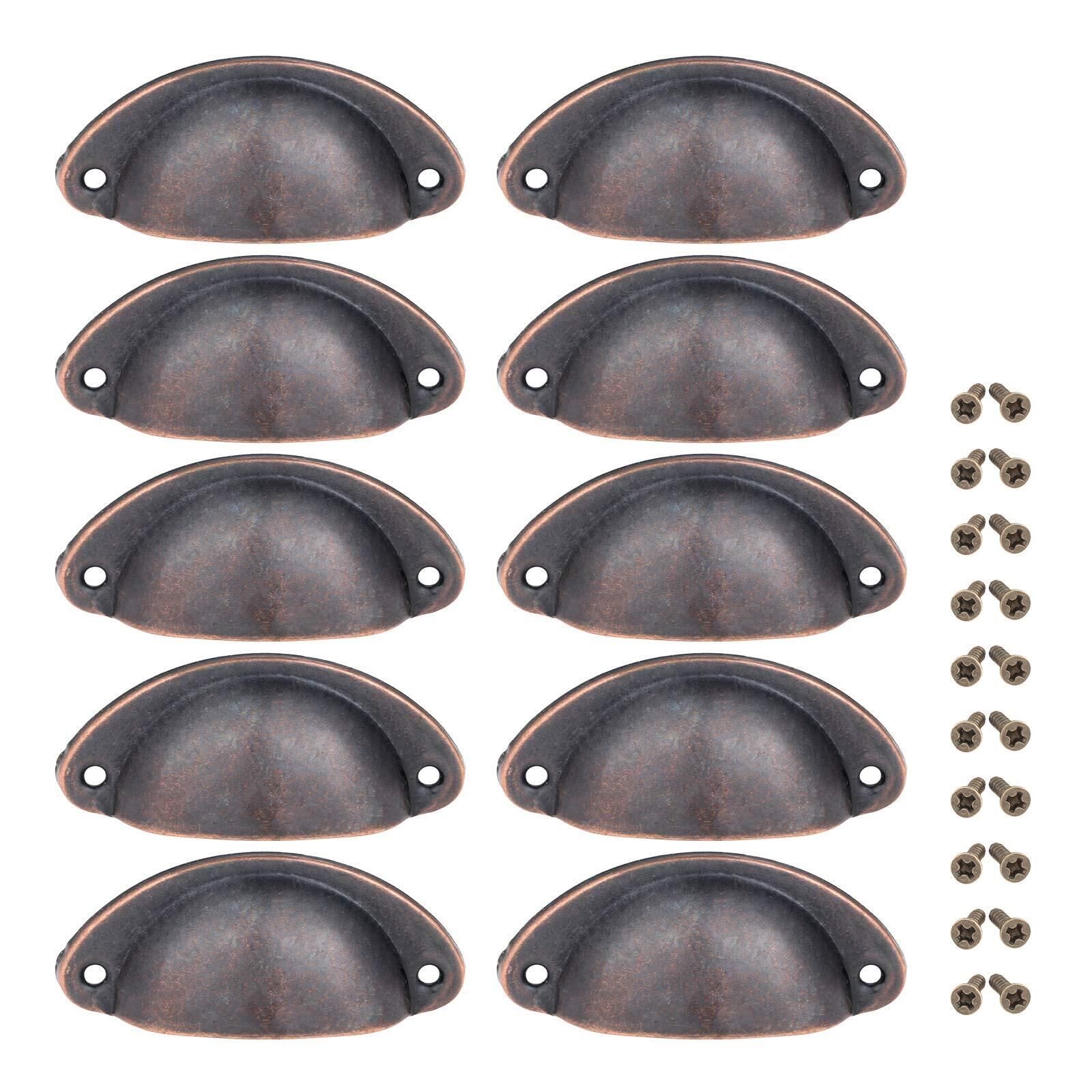 引き出し取っ手 アンティーク調 つまみ キャビネット 食器棚 取手 金具 引き出しノブ シェルハンドル アーチ型 レトロ 10個入り 赤い銅1