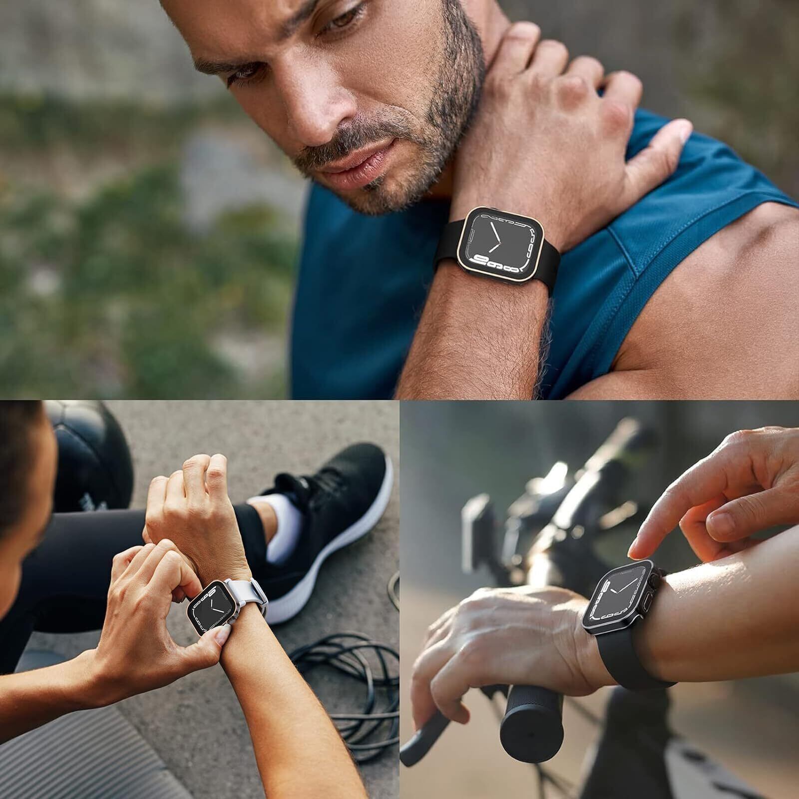 【全面保護ケース】Apple Watch 9 / 8 / 7用の画面保護フィルムは、耐キズ性の高いPC素材とHDテンパードガラスで作られており、時計をキズ、落下、衝撃から完全に保護します。