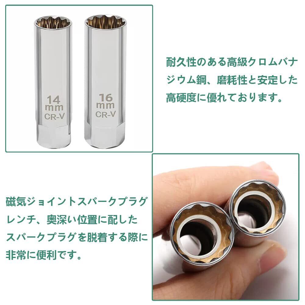 【特価セール】DFsucces プラグレンチ スパークプラグレンチ 磁気ジョイント ユニバーサルソケット 2本セット 12角薄壁 差込角3/8(9.5mm)イ薄型/輸入車等のプラグ交換に (14mm & 16mm) | わくわくSHOP