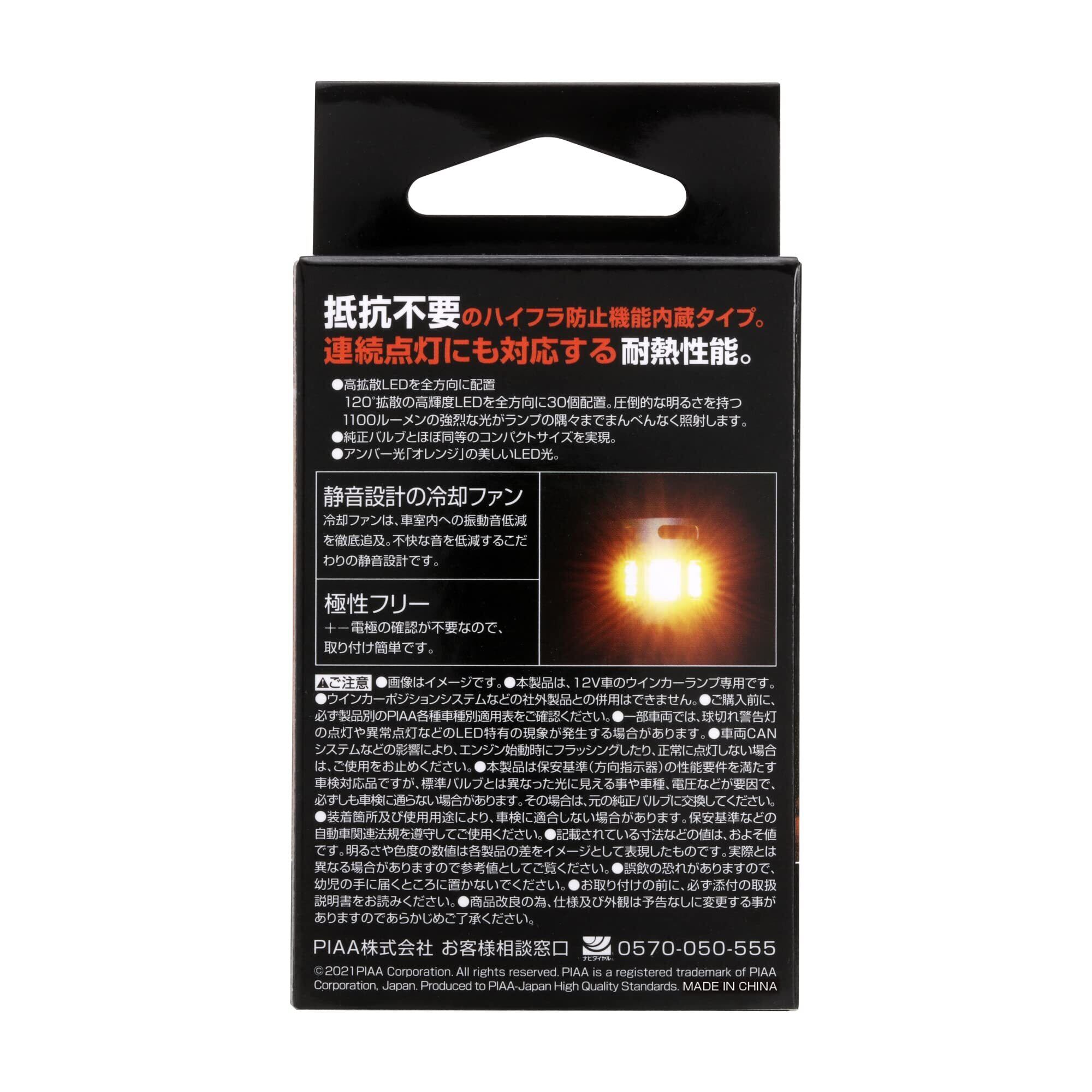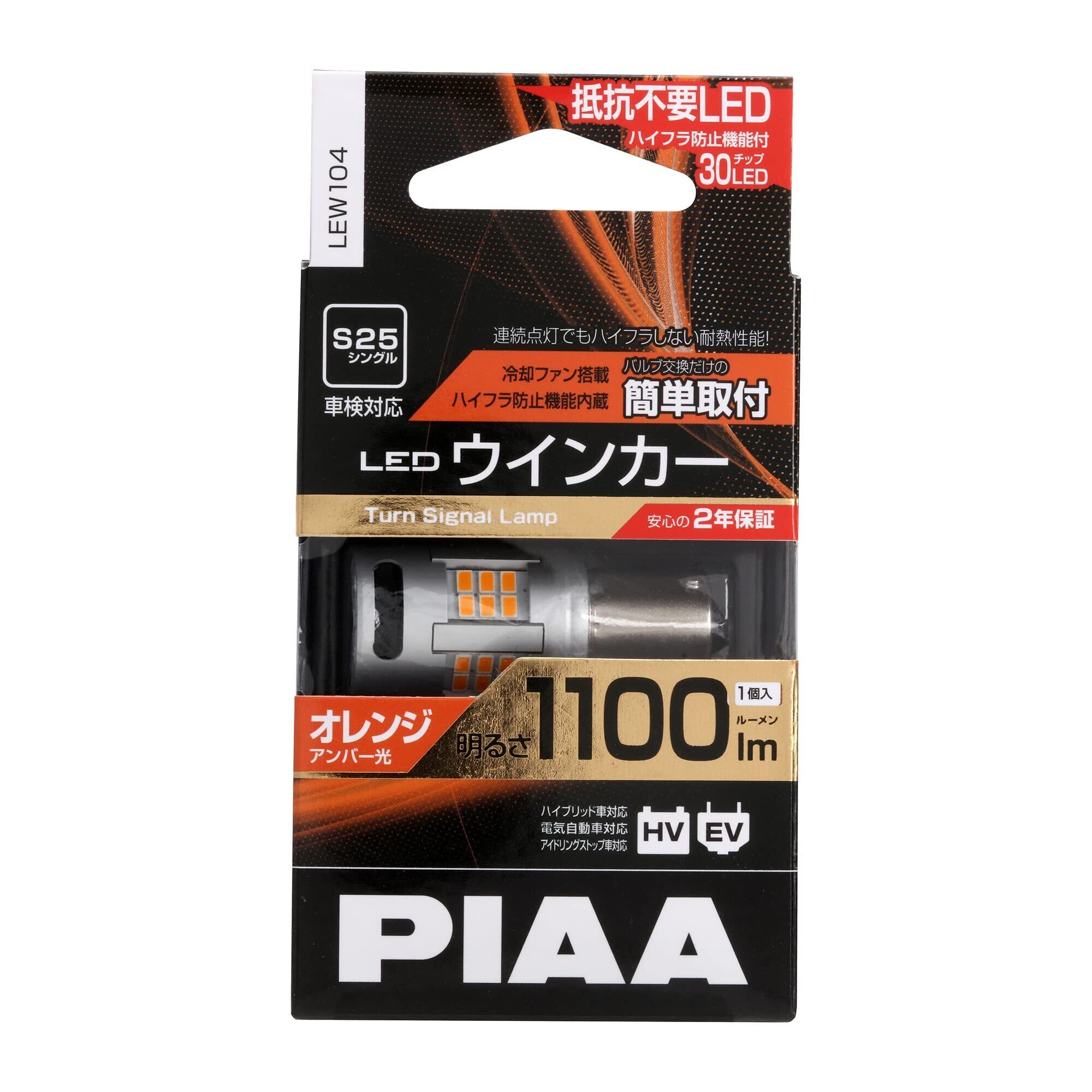 PIAA(ピア) ウインカー用 LED アンバー 冷却ファン搭載/ハイフラ防止機能内蔵 1100lm 12V S25 2年 車検対応 1個入 LEW104
