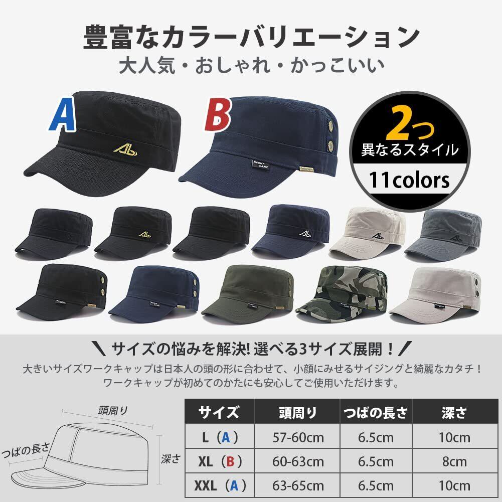 [Andeor] 【特大60-65cm】ワークキャップ キャップ 帽子 メンズ 大きいサイズ 【100%コットン・優の被り心地・UPF50+】 春 夏 UVカット帽子 日焼け防止 特大 深め 刺繍 ミリタリー 人気 かっこいい サイズ調整可能 男女兼用
