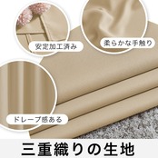 【縫製/付属品】1.5倍ヒダ・ 2ッ山 ・形態安定加工。遮光カーテン2枚入り、共布タッセル2枚付き、アジャスターフック14本付き(予備フック2本)、高さ6cmまで、14段階調節可能です。100%ポリエステルより、耐久性がよい。厚地の生地が絹のような滑らか、輝いているさま光沢があります。