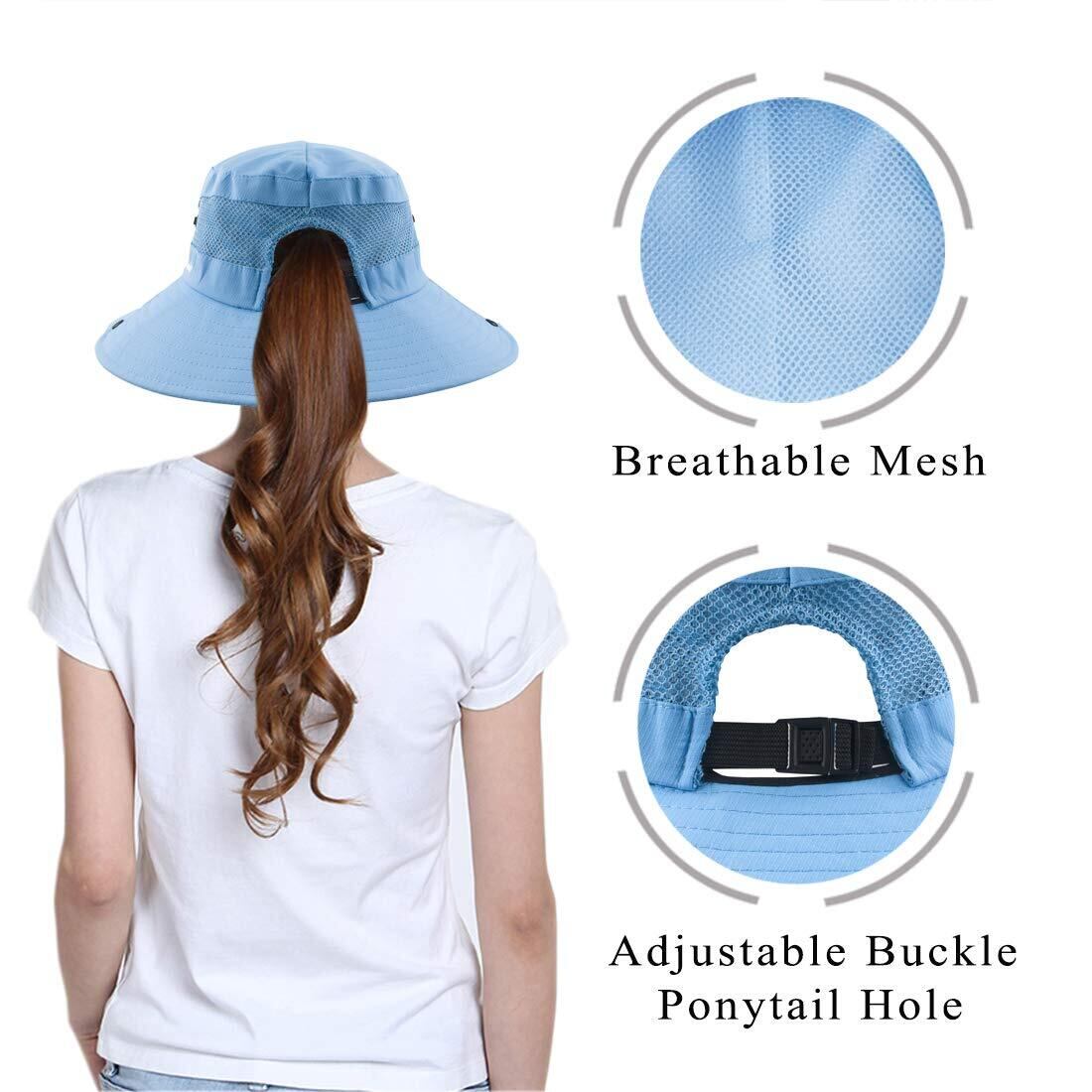 【新着商品】Muryobao (ムリョバオ) レディース ポニーテール 日よけ帽子 紫外線対策 折りたたみ式 メッシュ 幅広なつば ビーチや釣りの帽子, One Size