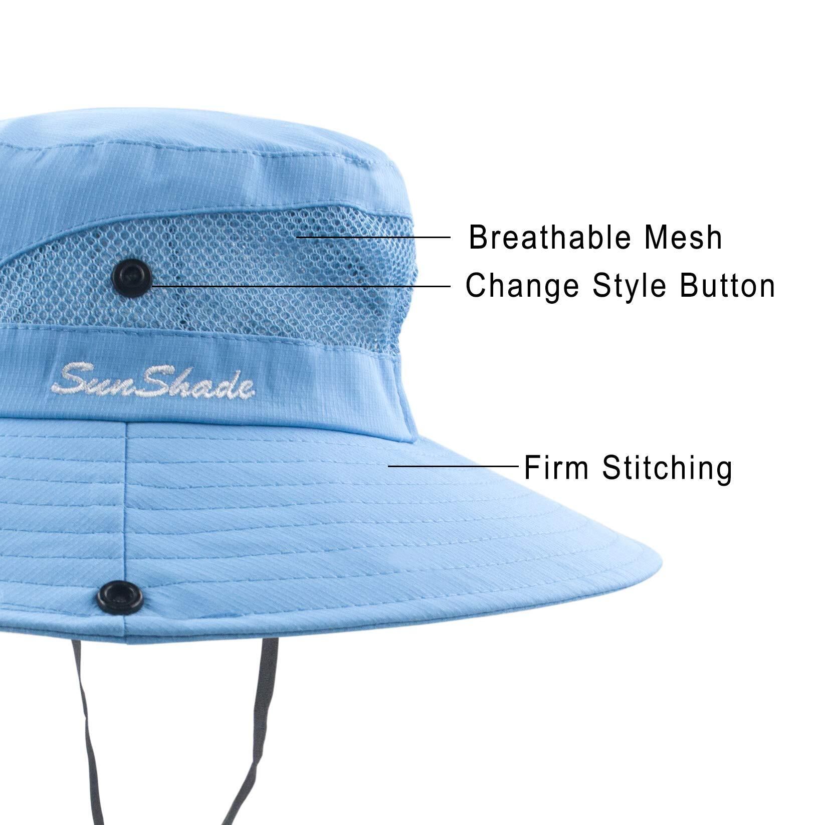 Muryobao (ムリョバオ) レディース ポニーテール 日よけ帽子 紫外線対策 折りたたみ式 メッシュ 幅広なつば ビーチや釣りの帽子, One Size