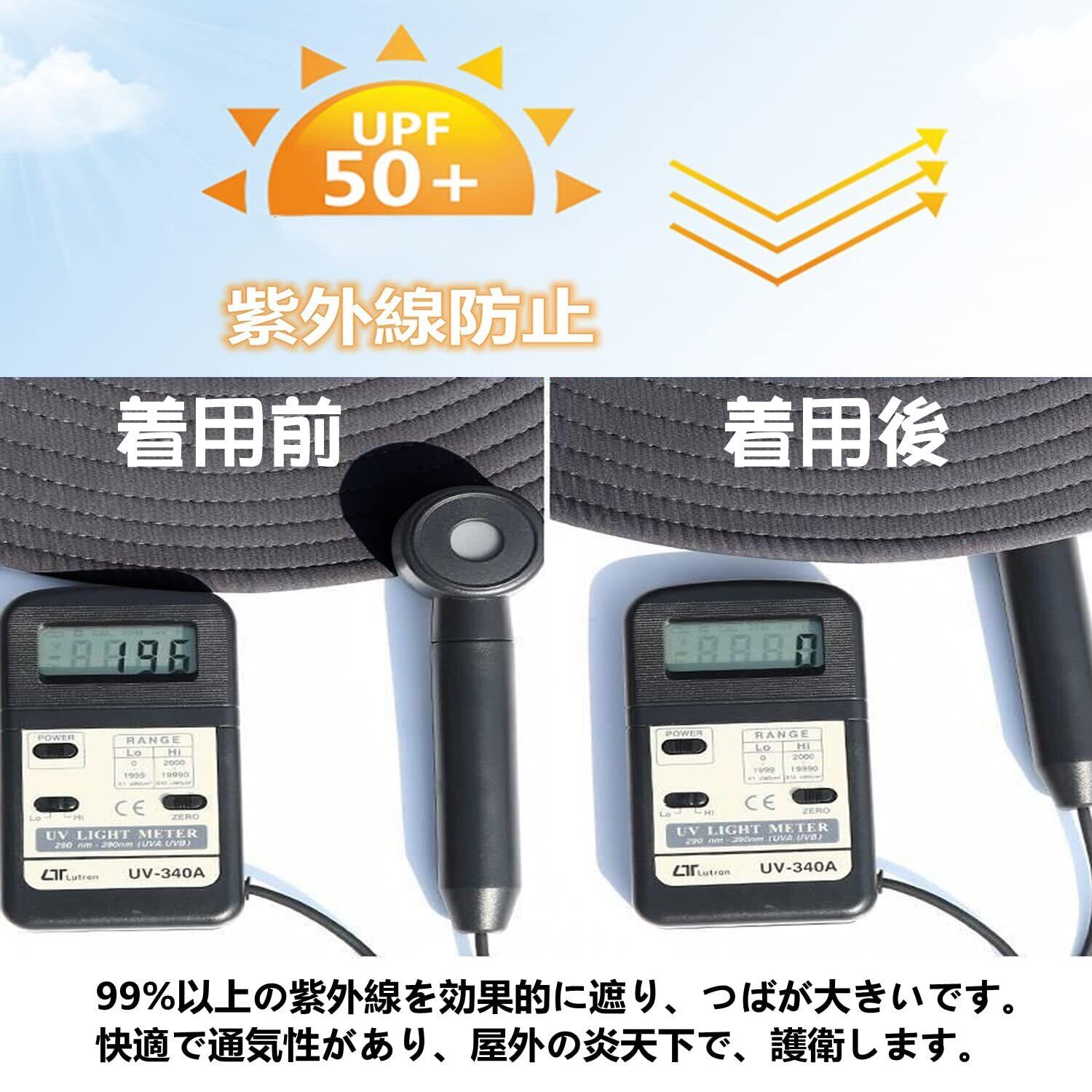 【紫外線防止】専門的な日焼け止め紫外線防止技術の布地を採用し、99%以上の紫外線を効果的に遮ります。つばは顔の日光を遮ります。つばが大きいので、首の周りを保護します。日焼け予防と夏バテ予防の必需品です。