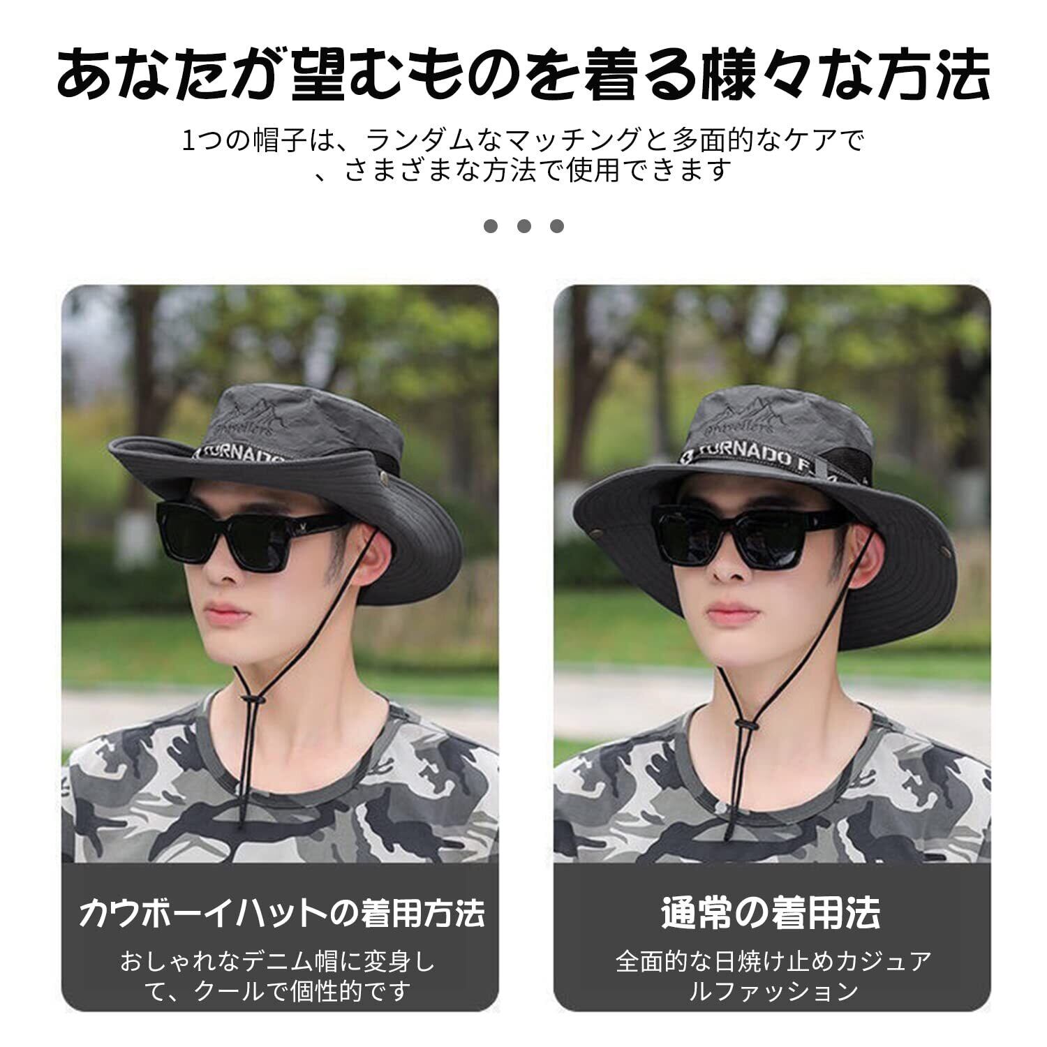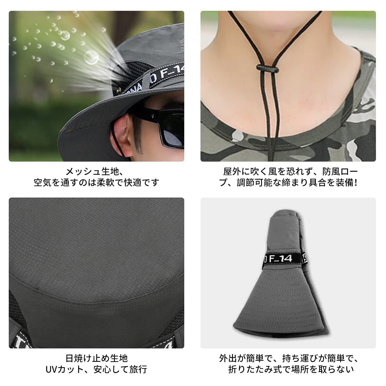 [RICISUNG] サファリハット メンズ UVカット UPF50+ 通気性 ハット 帽子 つば広 大きいサイズ 紫外線対策 日焼け防止 速乾性 軽量 防風 防塵 日除け 汗止め 紫外線対策 折りたたみ あご紐付き アウトドア 釣り ハイキング 登山 自転車