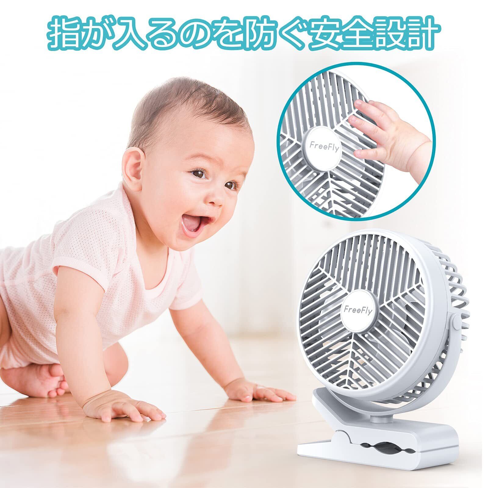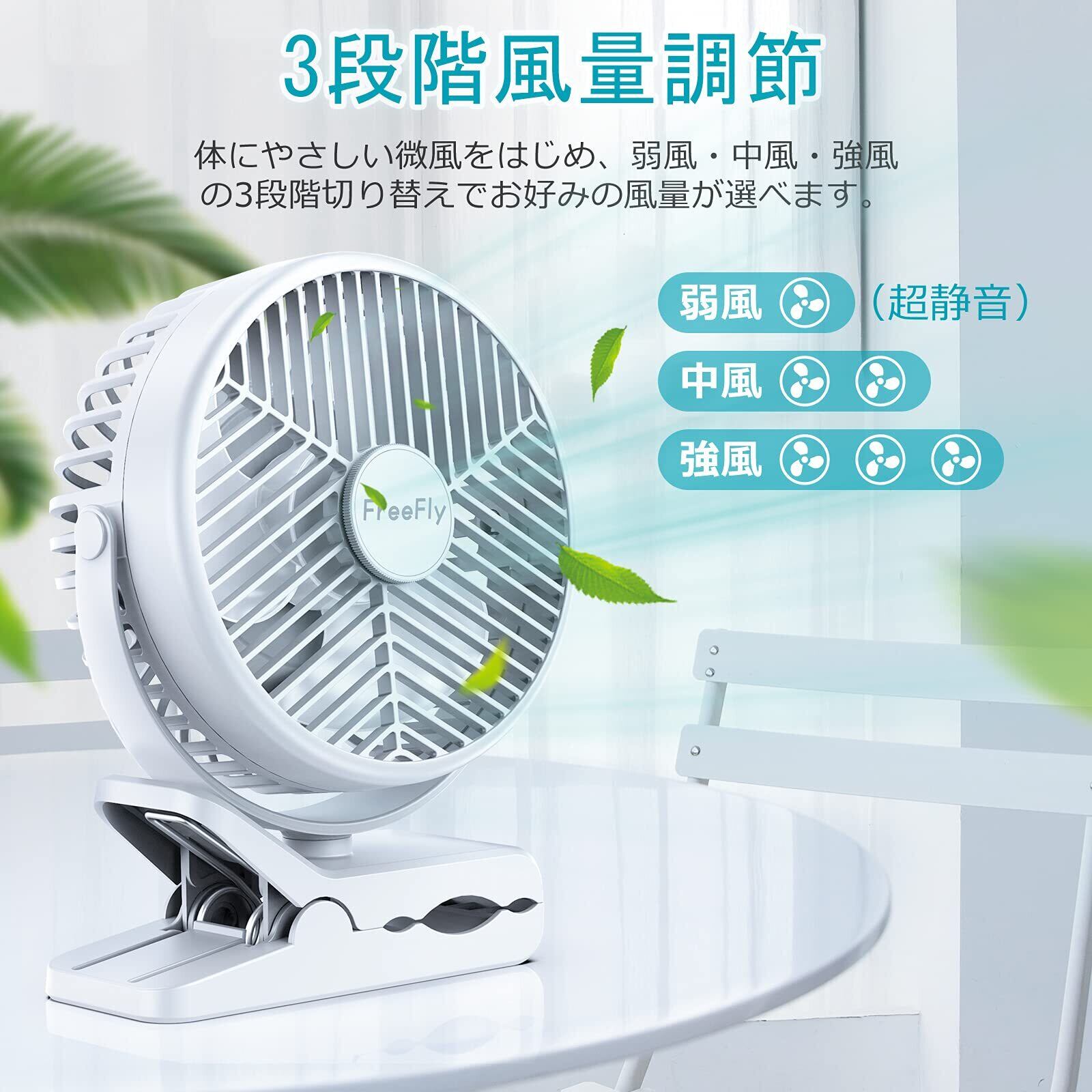 【10000mAh電池内蔵】FreeFly 充電式クリップ扇風機 卓上扇風機 直径約10CM羽根 14cm大型ファン搭載 風量3段階調整 Type-C・USB-A端子搭載 スマート急速充電対応 360度角度調整 デスク・リビング・野外など…