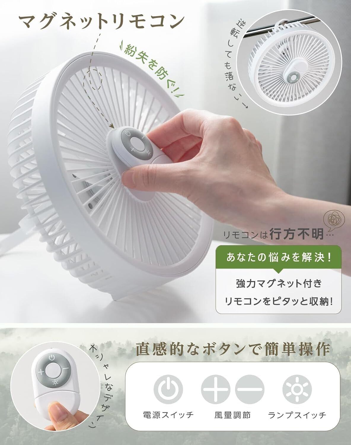 【マグネット式リモコンで操作簡単】付属のマグネット式リモコンにより、遠隔操作が可能。リモコンは扇風機本体に簡単に取り付けられ、紛失の心配もありません。スイッチ一つでオン・オフや風量調整が手軽に行え、使用中の快適さをさらに向上させます。