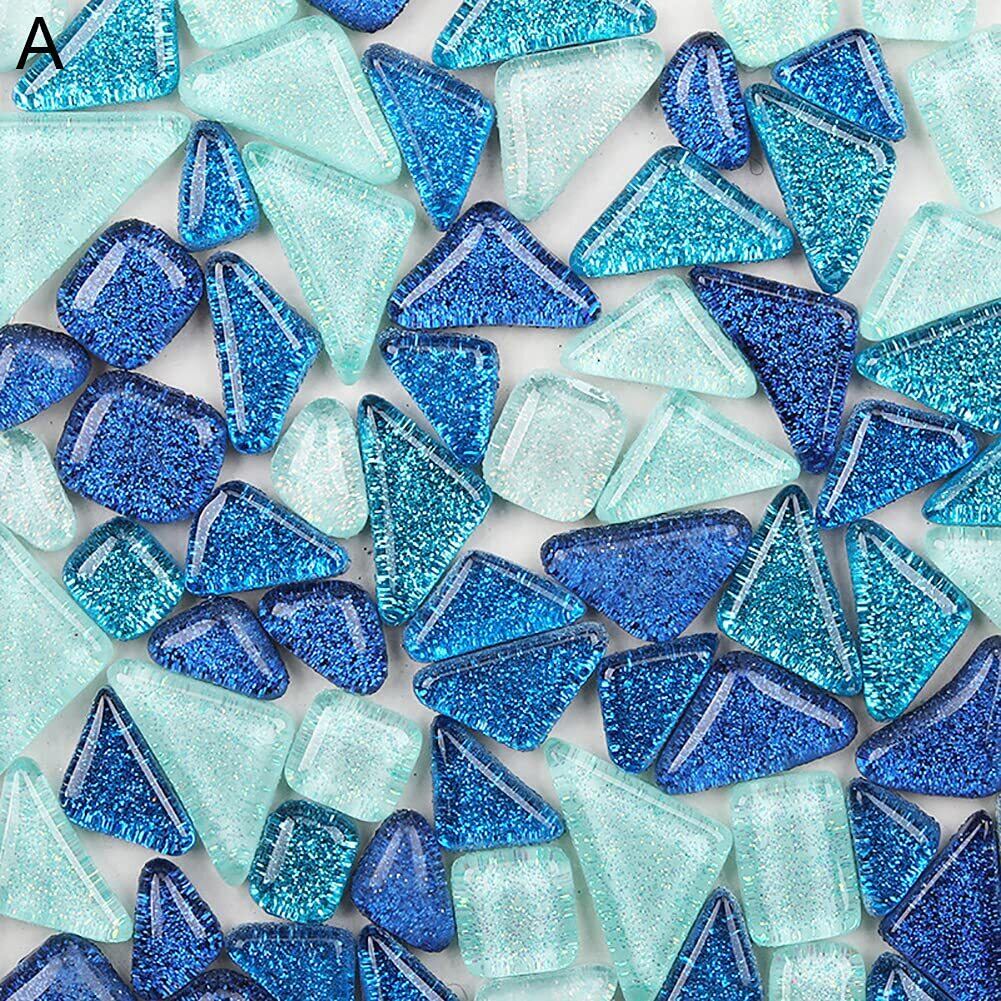 CarAngels ガラスモザイクタイル ブルー系3色ランダムミックス 200g入り 可愛いラメデザインタイル 不規則 DIY 内装 デコレーション ハンドメイド クラフト (A)