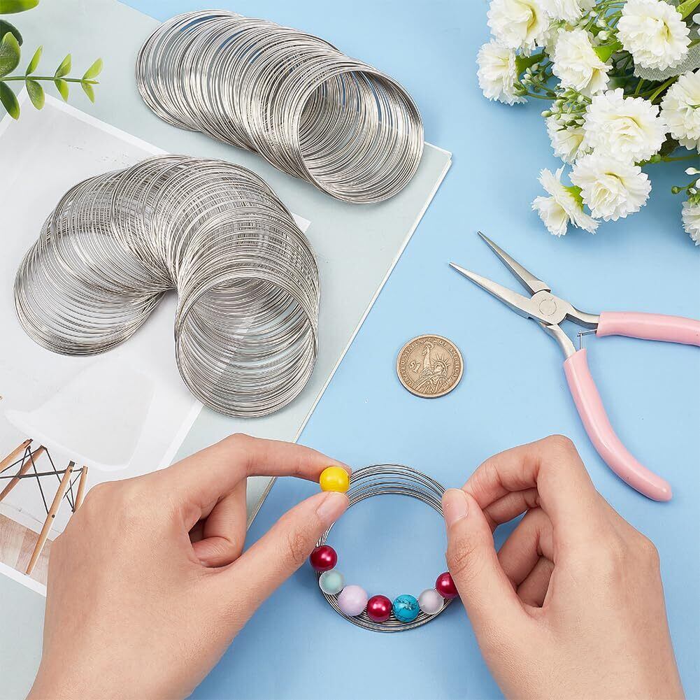 BENECREAT 300ループステンレスワイヤー メモリーワイヤー アクセサリーワイヤー 手芸ブレスレットワイヤー 線径0.6㎜ クラフトワイヤー 手芸素材 DIY手作り 副資材 ジュエリー用 記憶ワイヤー 園芸 ハンドメイド