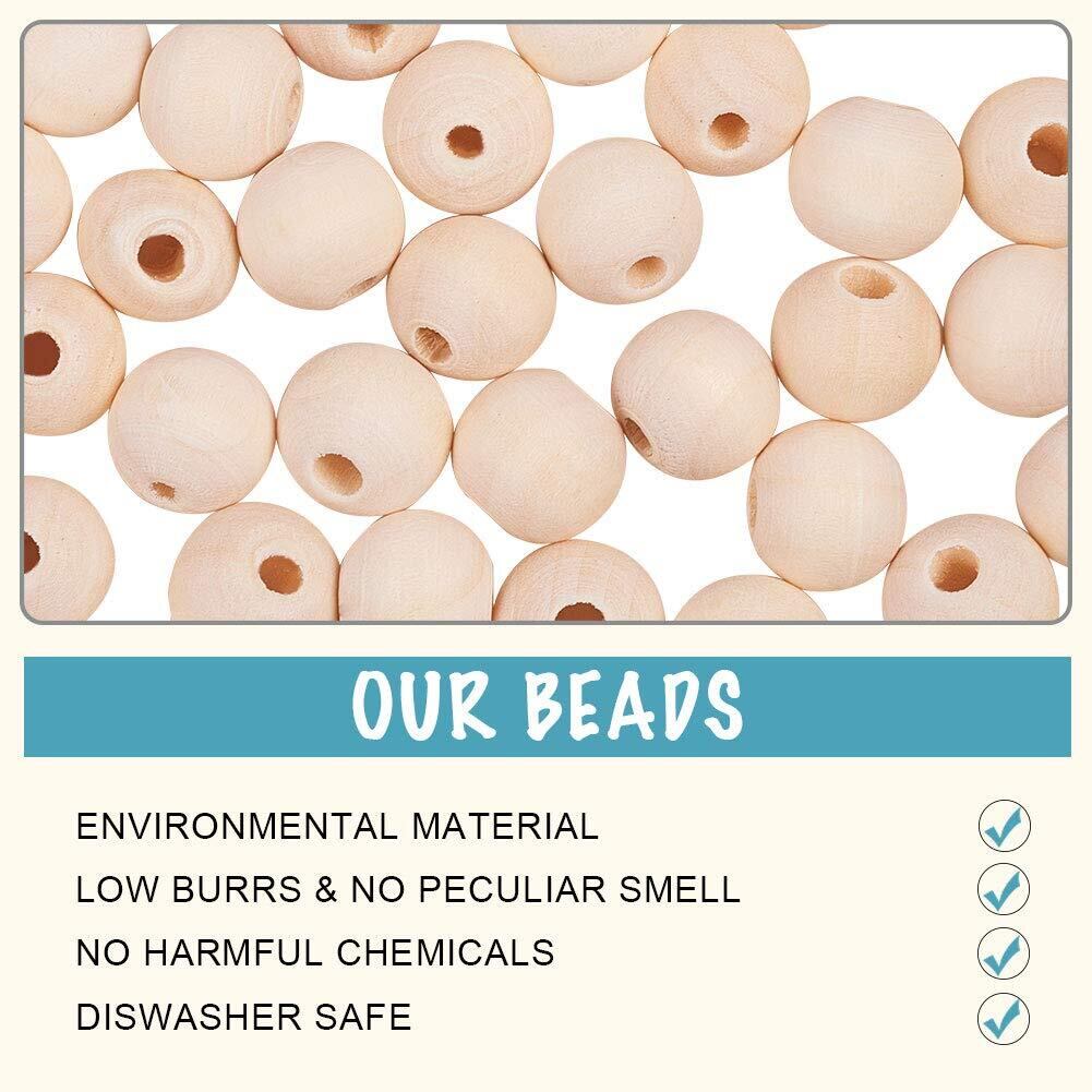 PH PandaHall 約100個/袋 ウッドビーズ 12x12mm 穴2.5 mm プラスチック ラウンドビーズ 無地 色染め 可能 DIY用 手芸用品 ジュエリー用 アクセサリーパーツ ネックレス ブレスレット 手作り素材 モカシン