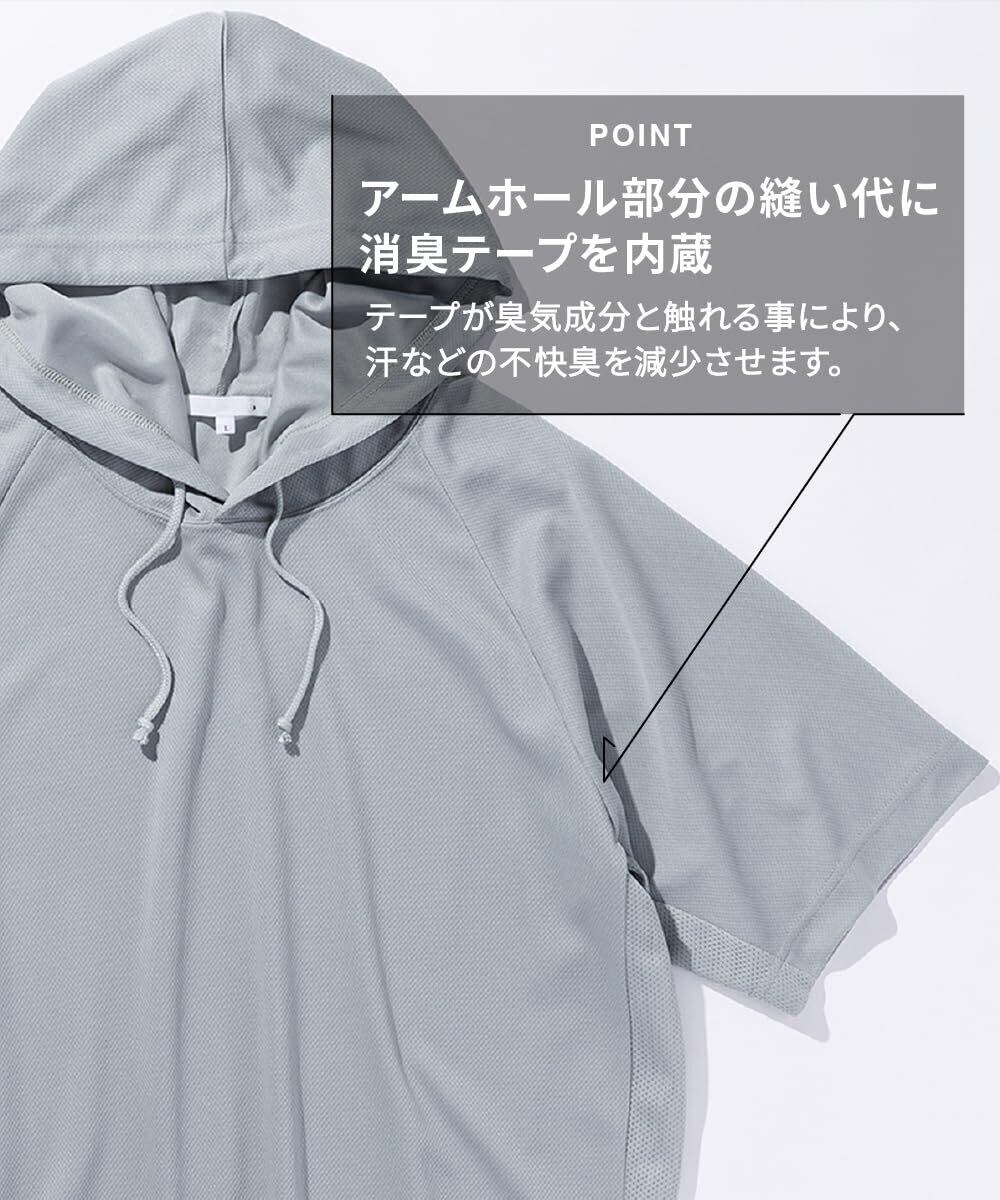 [ニッセン] トップス パーカー 半袖 メッシュ 立体設計 スッキリ見え 吸汗速乾 消臭テープ付 メンズ 夏