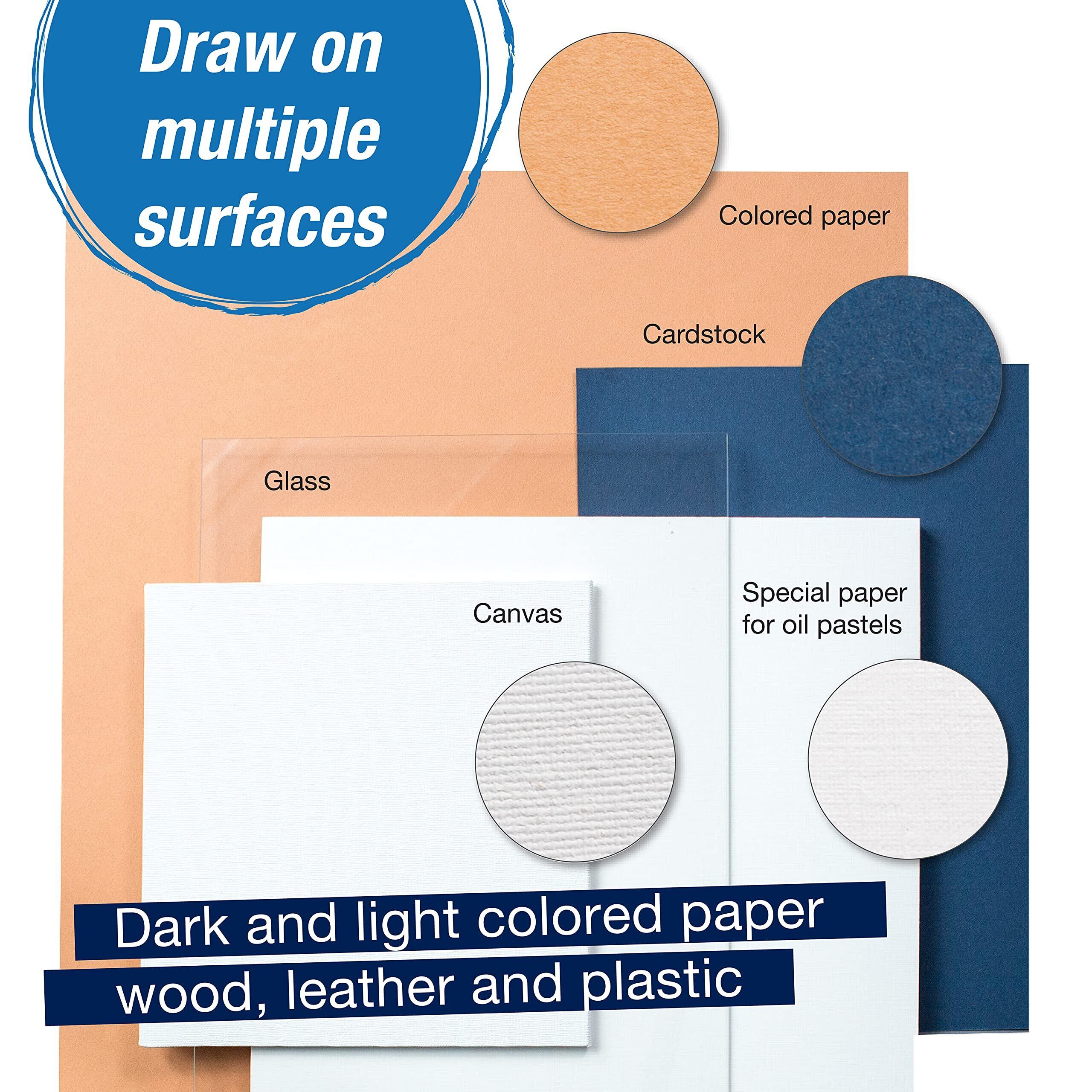 安全性の高い顔料を使用した鮮やかな発色のオイルパステルです。折れにくく、お子様から大人まで、どなたにも使いやすい程よい太さ、柔らかさが特徴です。色の伸びが良く、重ね塗りによる混色が自在にできます。描いた後、指でこすって紙面に定着させたり、ドライヤーを用いて熱処理すると防触定着ができます。テレピン油で溶かせます。