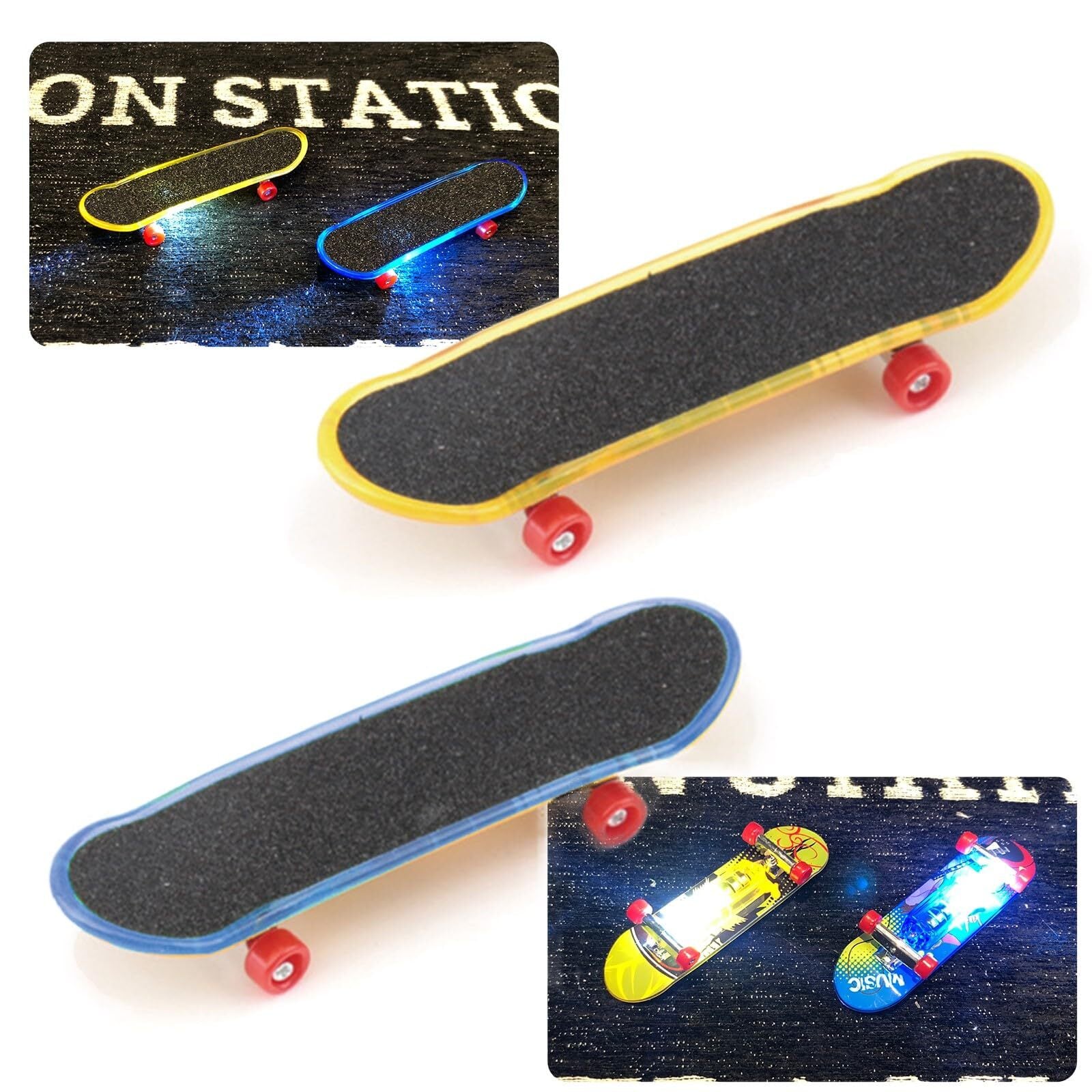 (Kitzel)指スケボー 指スケ フィンガースケートボード LED付き フィンガーボード 誕生日プレゼント 贈り物 子供 ブルー・イエロー2個セット