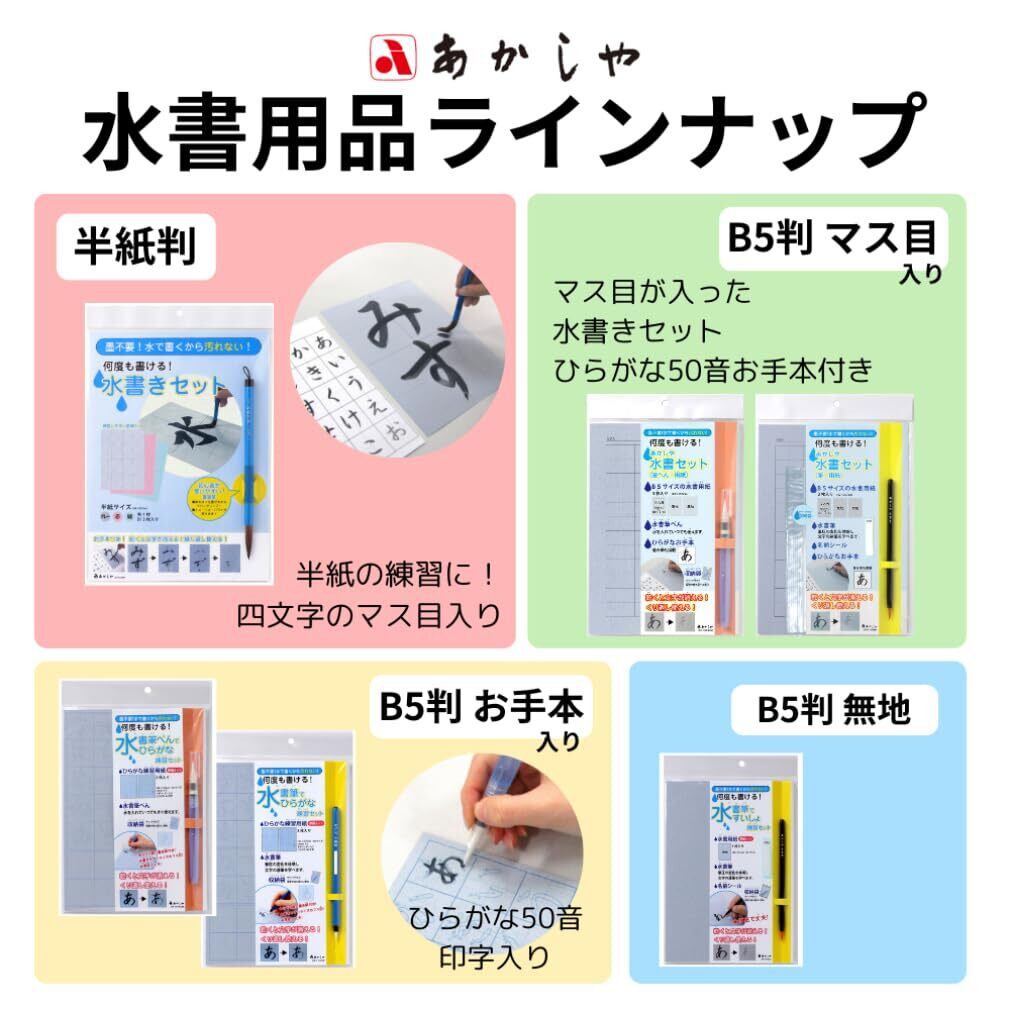 【セット内容】水書き用紙:3枚(グレー、赤、緑、各1枚入り)、書道用太筆1本