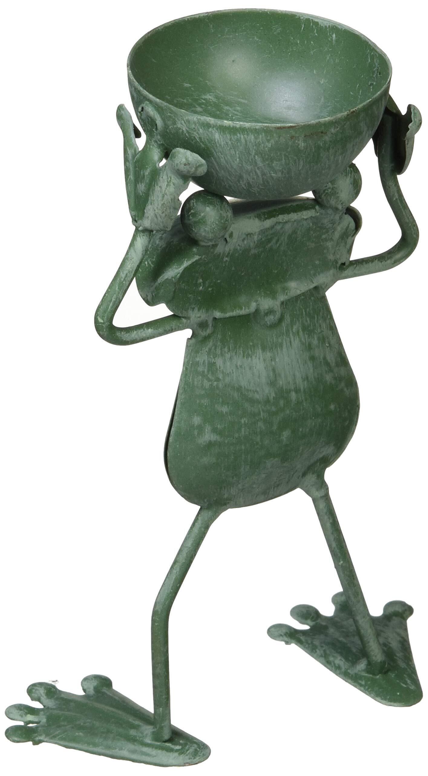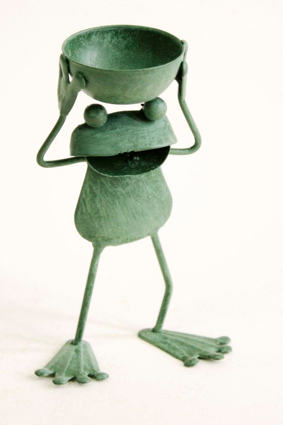 カエルが桶を持ったデザインの置物