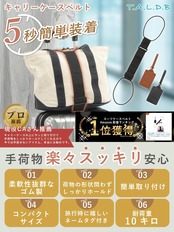 【製品特徴】スーツケースの上の手荷物をがっちりホールドできる優良ベルト。スムーズに長さ調節も可能なので、荷物の大きさに合わせてキャリーの上に荷物を載せてもズレ落ちない便利グッズ 段差や振動で悩まされていた荷物のズレも解消出来るトラベルグッズ です。