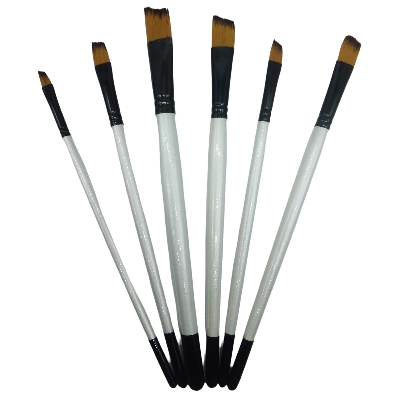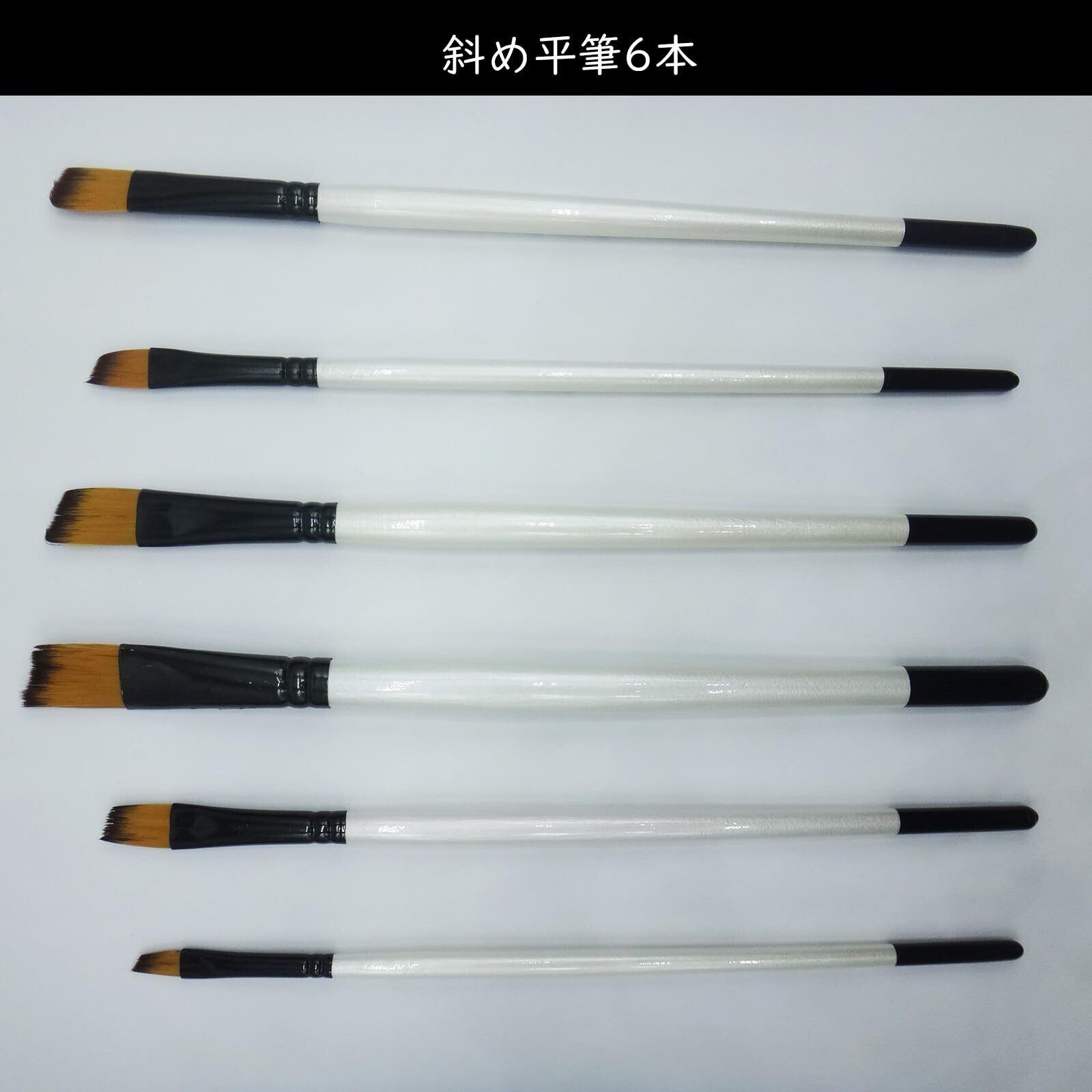 【商品仕様】入数:斜め平筆6本 材質:穂先/ナイロン繊維 軸:木 パッケージ重量:約43g 生産国 : 中国