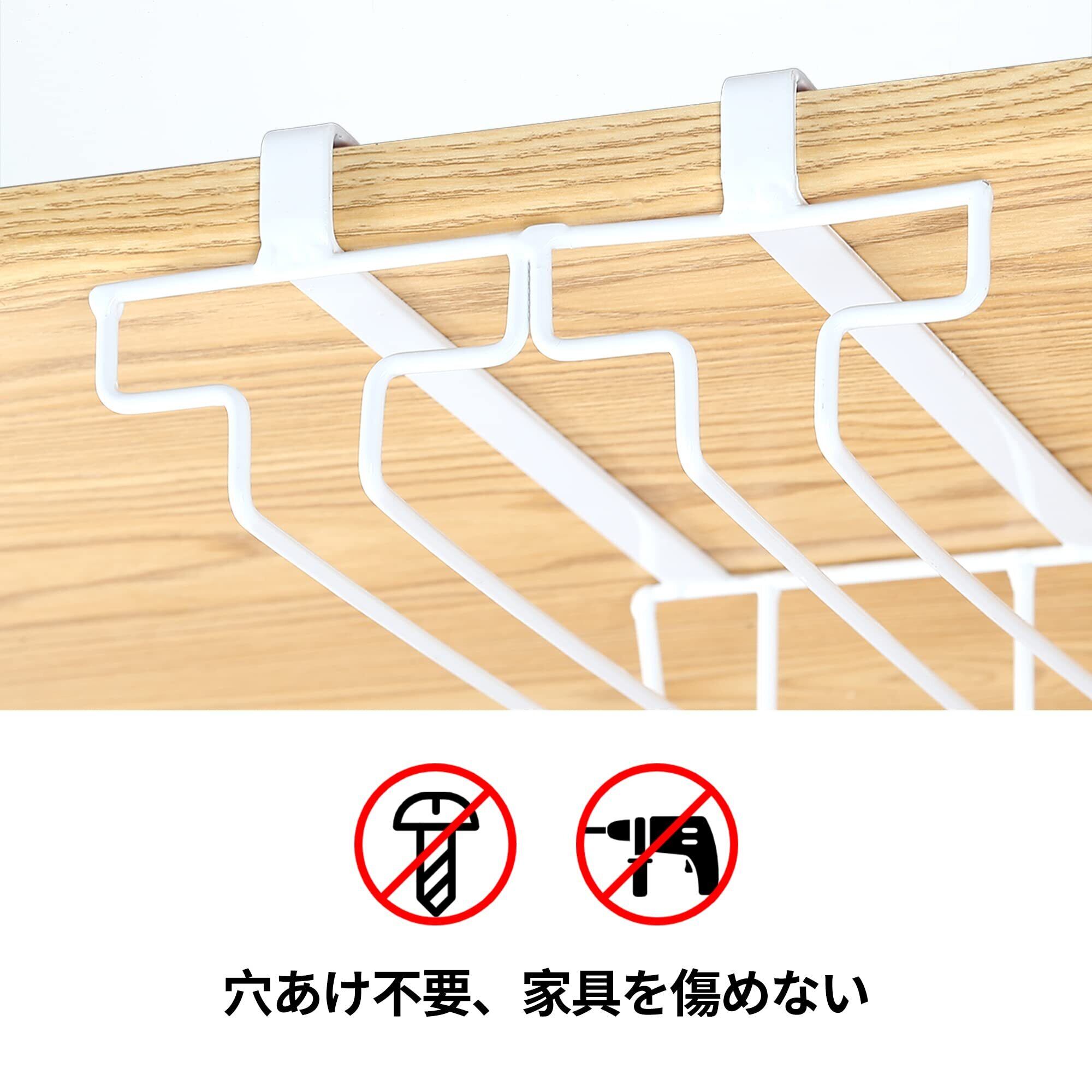 FOMANSH ワイングラスホルダー 吊り下げ 穴あけ不要 収納可能 ネジ止め不要 棚厚さ調節可能 キッチン 白色
