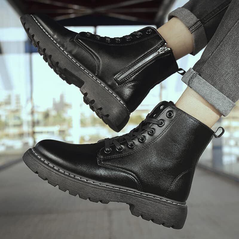 [aspersio] [アスペルシオ] 大人カッコいい ハイカット ブーツ ビジュアル系 サイドジップ 厚底 編み上げ レースアップ シューズ メンズ