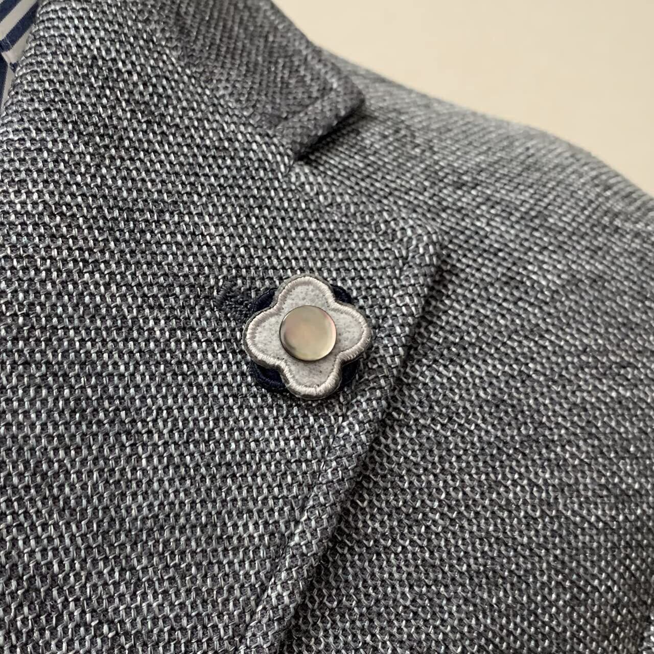 [ピンクターダ] PINCTADAブートニエール ラペルピン フェルト×蝶貝 W4花弁 Ⅰ (グレー×ネイビー×黒蝶貝)