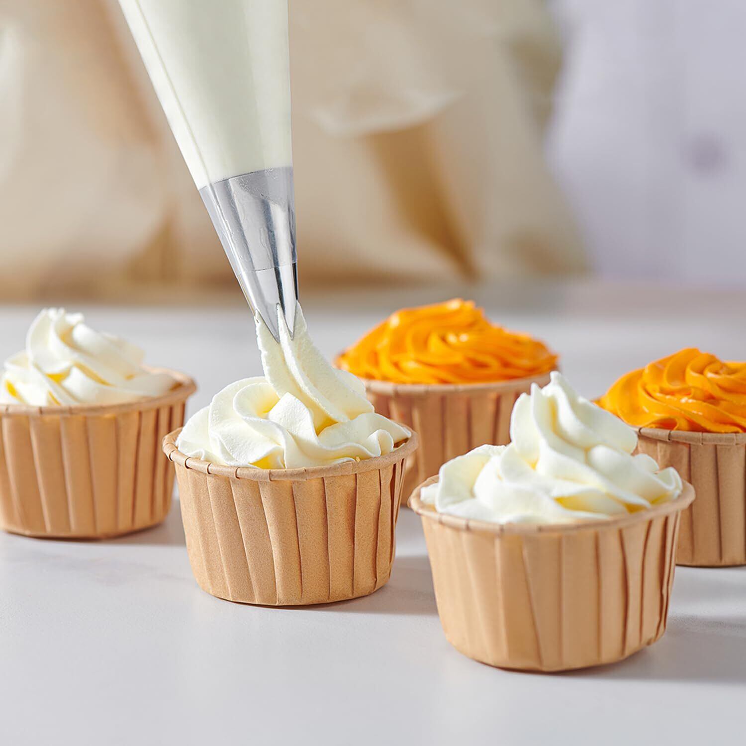 理想的な絞り袋:焼きたてのケーキやカップケーキを華やかにデコレーションするのはもちろん、シュークリーム、エクレア、メレンゲ、マッシュポテト、クッキー生地にも大活躍。これひとつで幅広いレシピをもっと楽しく、美しく仕上げましょう。