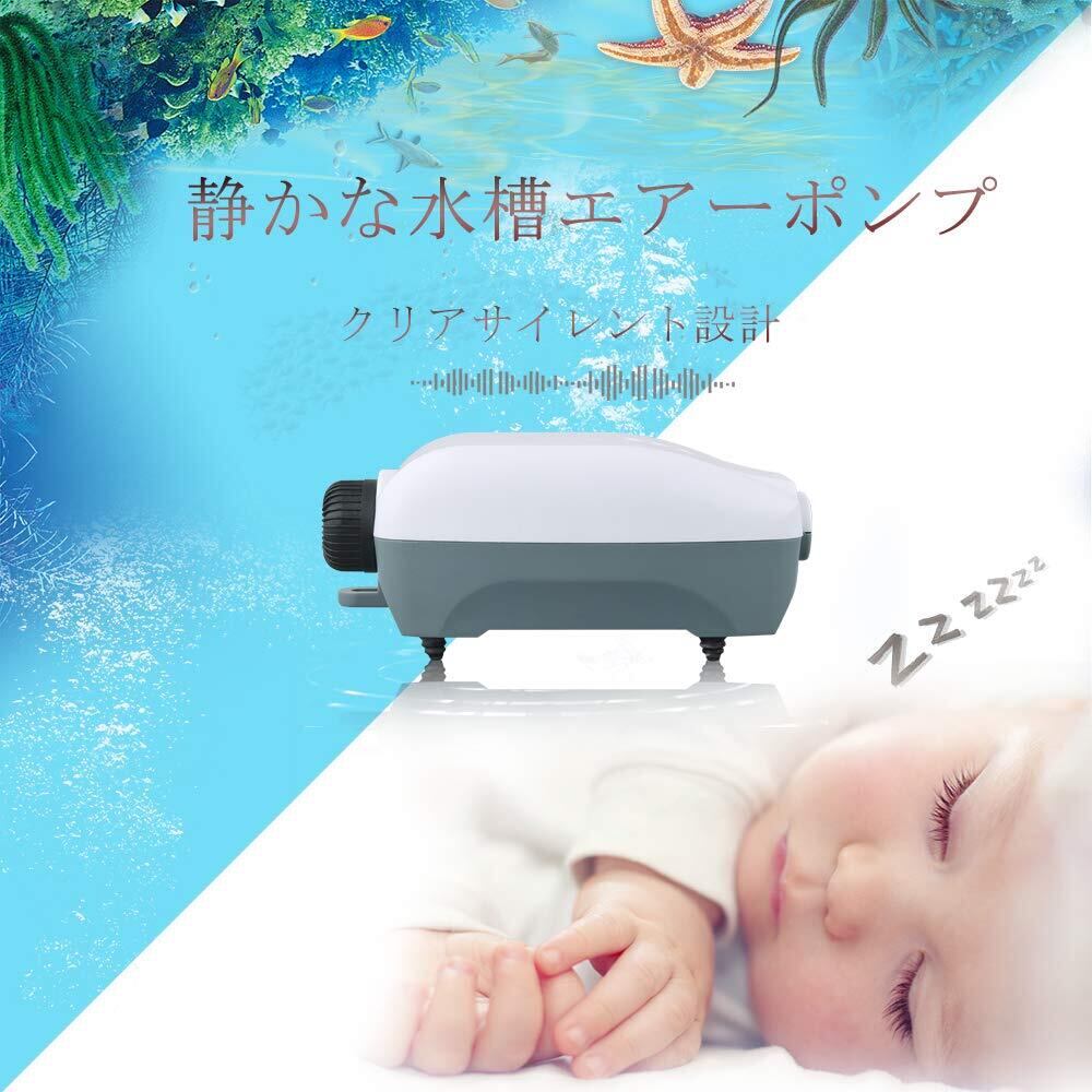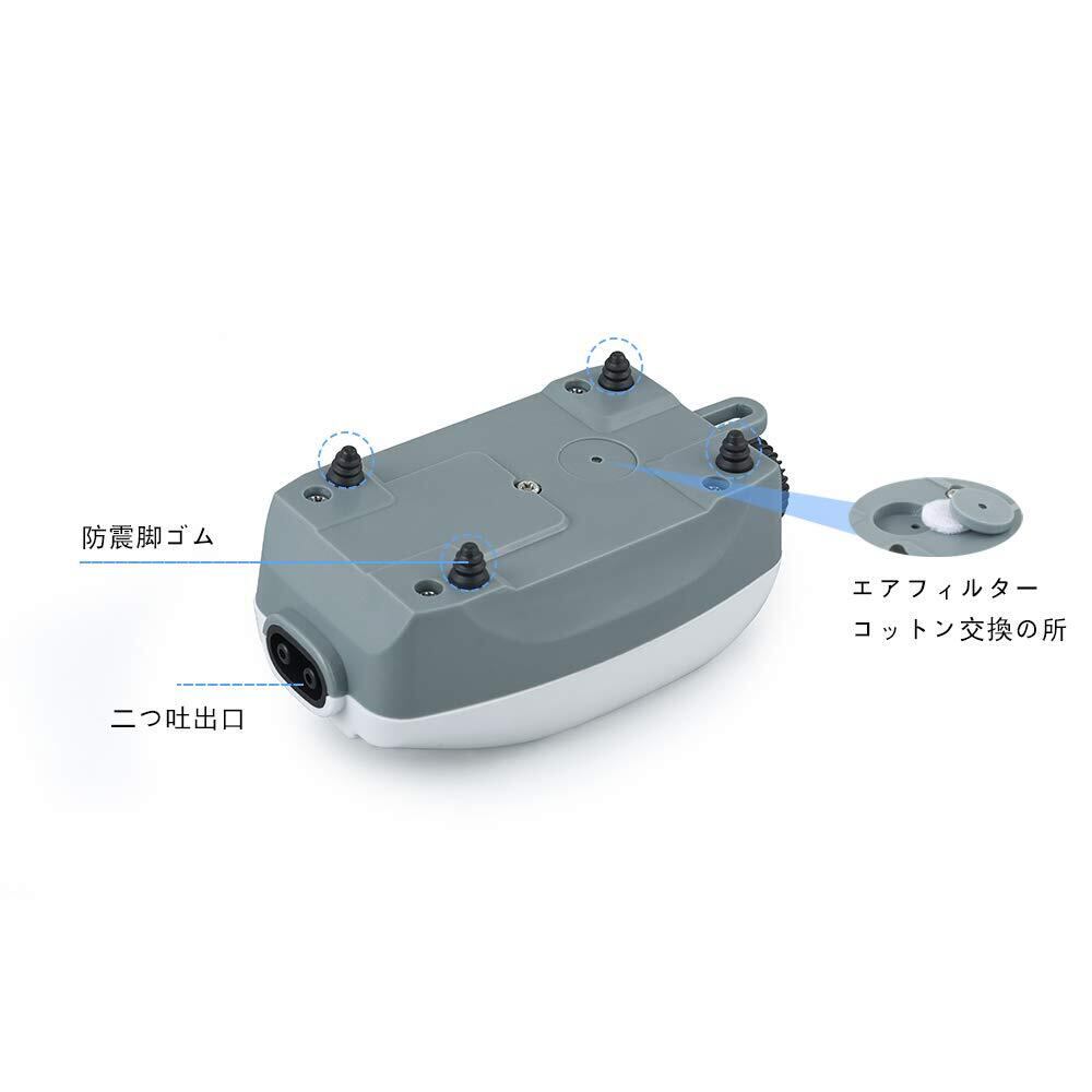 HITOP 静かな水槽エアーポンプ 3W可調節 吐出口2つ 完備なアクセサリー付き 水槽に酸素提供エアーポンプ