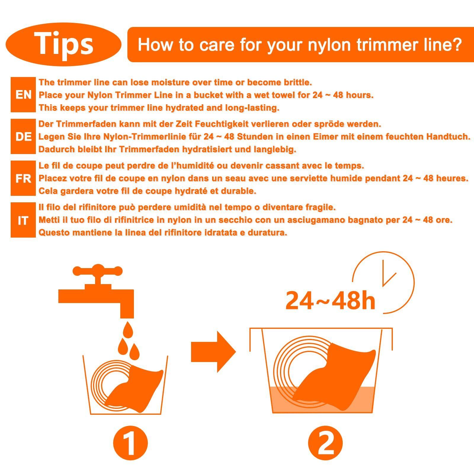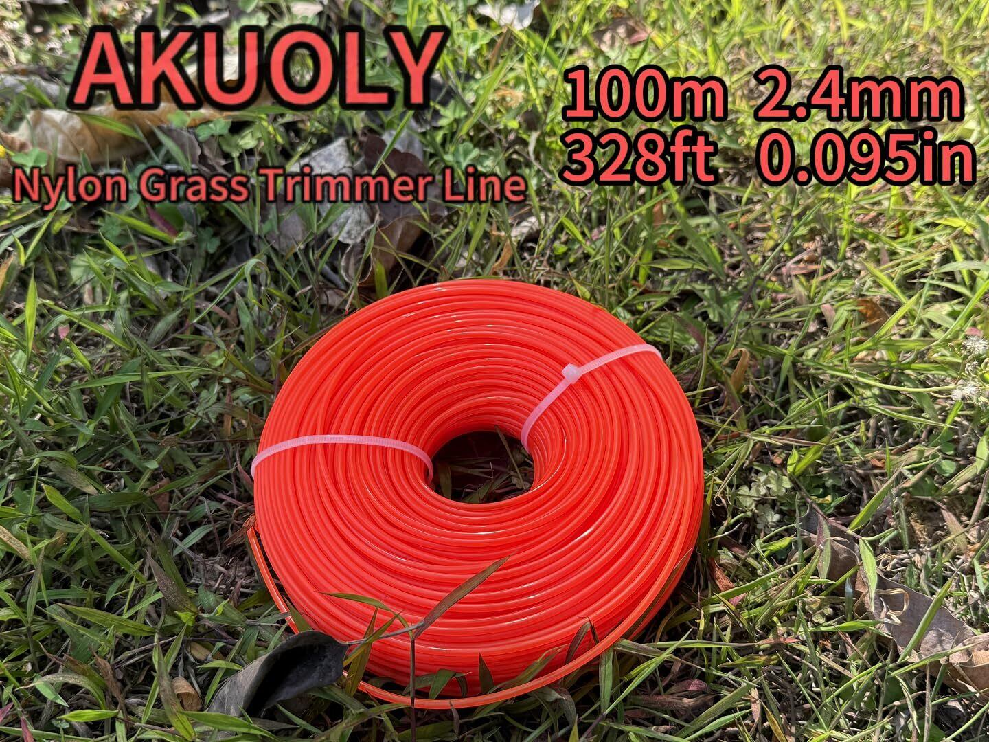 Akuoly 草刈用 ナイロンコード 2.4mm径 草刈機 刈払機 草刈用 草刈り機ストリング 、 オレンジ、100m