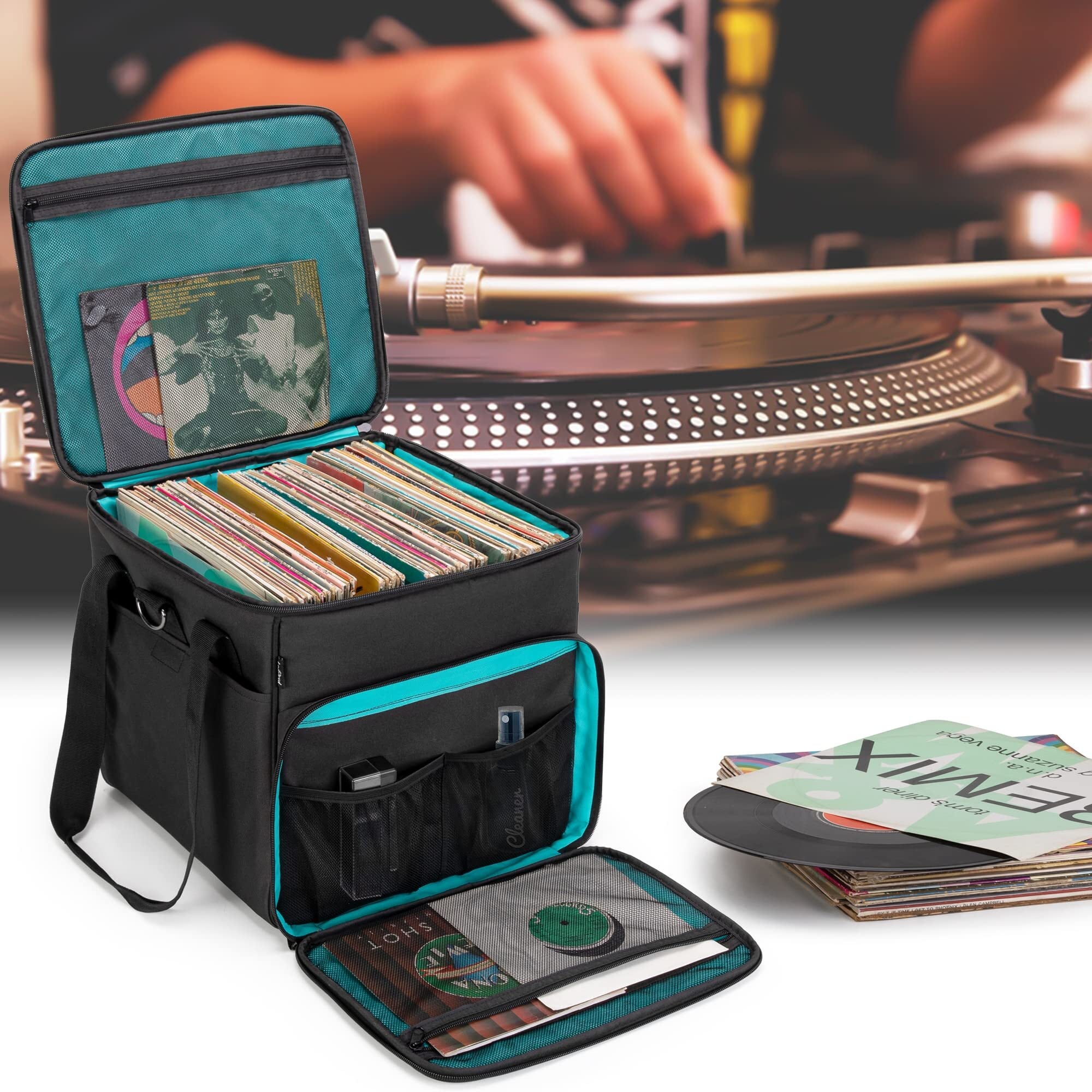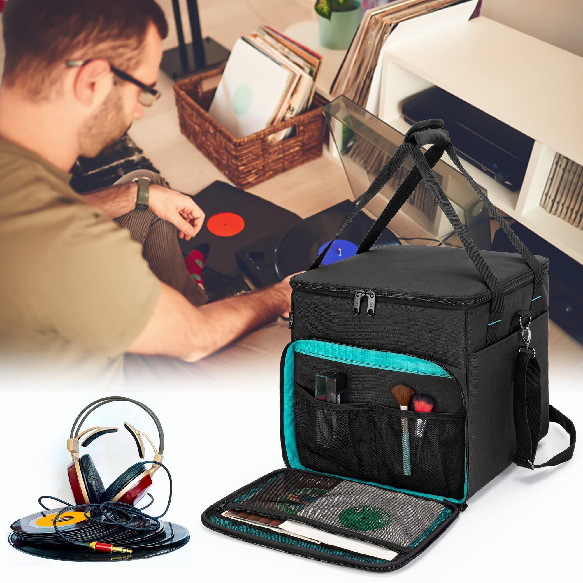 【収納力抜群】レコードバッグには、約60枚の7/10/12インチのレコードを収納できます。フロントポケット1つとサイドポケット2つで、7インチのレコードを複数収納できます。または、アクセサリーやクリーニング用品を収納することもできます。