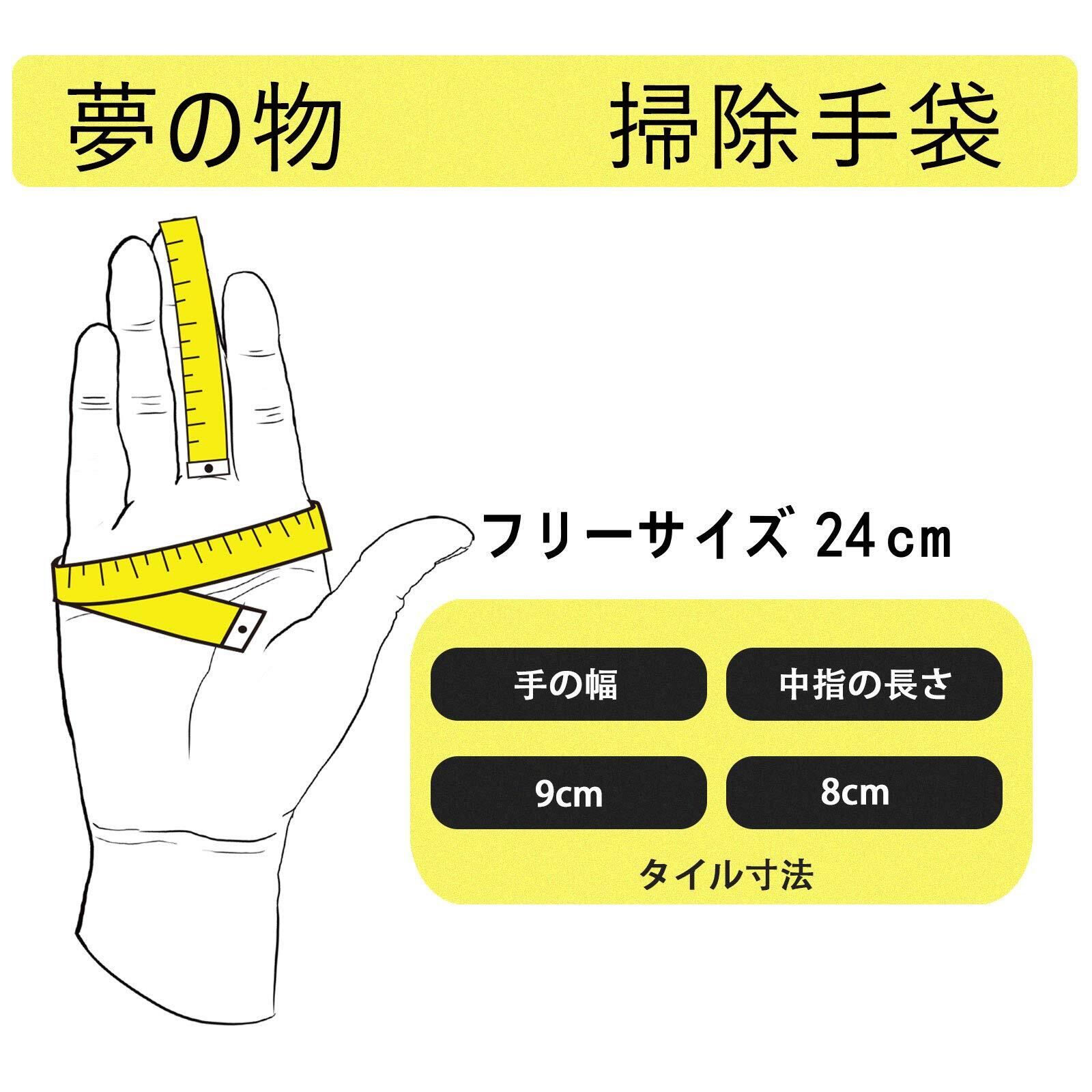 【幅広い用途】掃除グローブは、主に家庭やオフィスの掃除作業に使用されます。キッチンやトイレ、ベッドルームなど、汚れが付きやすい場所の掃除に特に有効です。また、車やバイク、フローリングなど、掃除作業に適した場所でも使用することができます。効率的かつ簡単に掃除作業を行うことができるため、生活に必要不可欠なグッズとして人気があります。