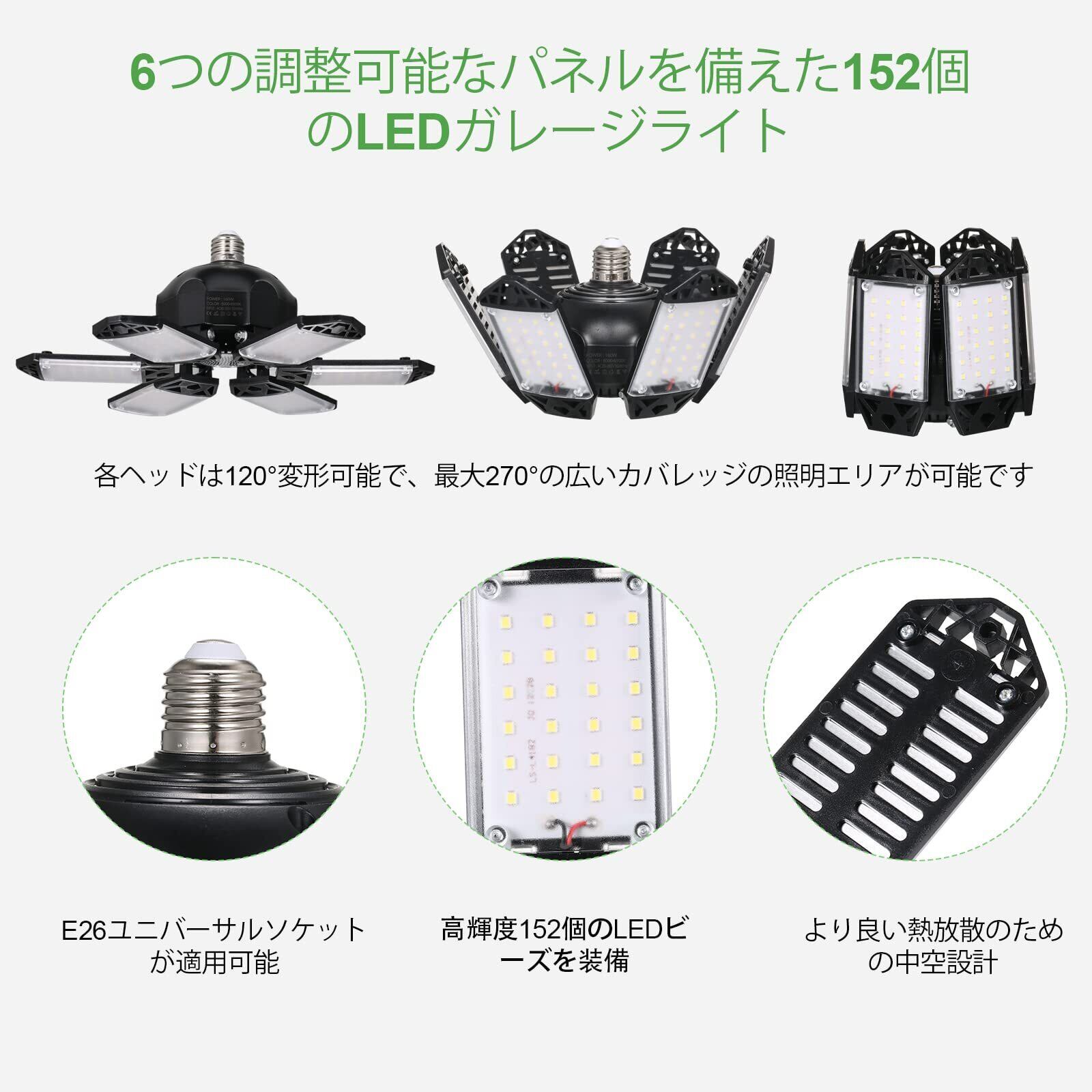 【LEDガレージライト】:152個の高輝度LEDランプビーズを搭載し、ちらつきなく目を保護し、6000〜6500kの昼光白色光の下で柔らかく快適な楽しみを提供し、視覚的疲労を軽減する。