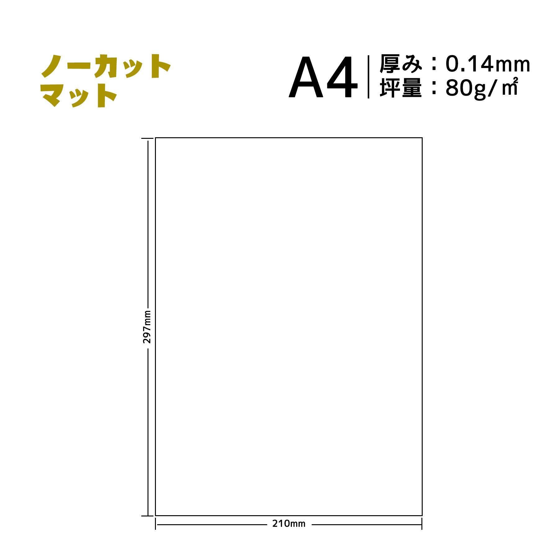 サイズ:A4(210mm×297mm)50枚入り ノーカットステッカーマット用紙(光沢ない)