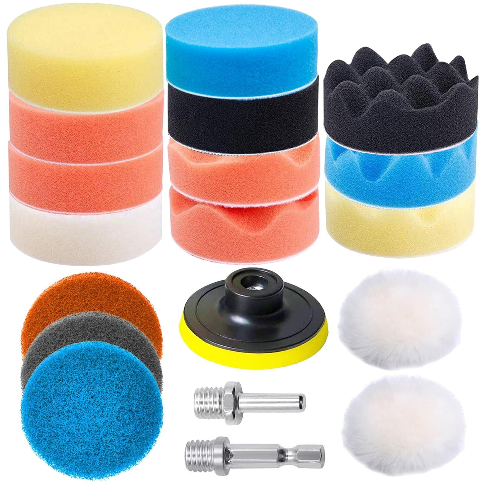 19点セット75mm ポリッシャーバフ GOH DODD 精練パット 六角軸、円柱型 付きM10 研磨パッド 洗車 車磨きバフ ワックスがけ 研磨艶出し 塗装仕上げ 浴室掃除 水垢取りに 電動ドリル ドライバー 電動ポリッシャー用