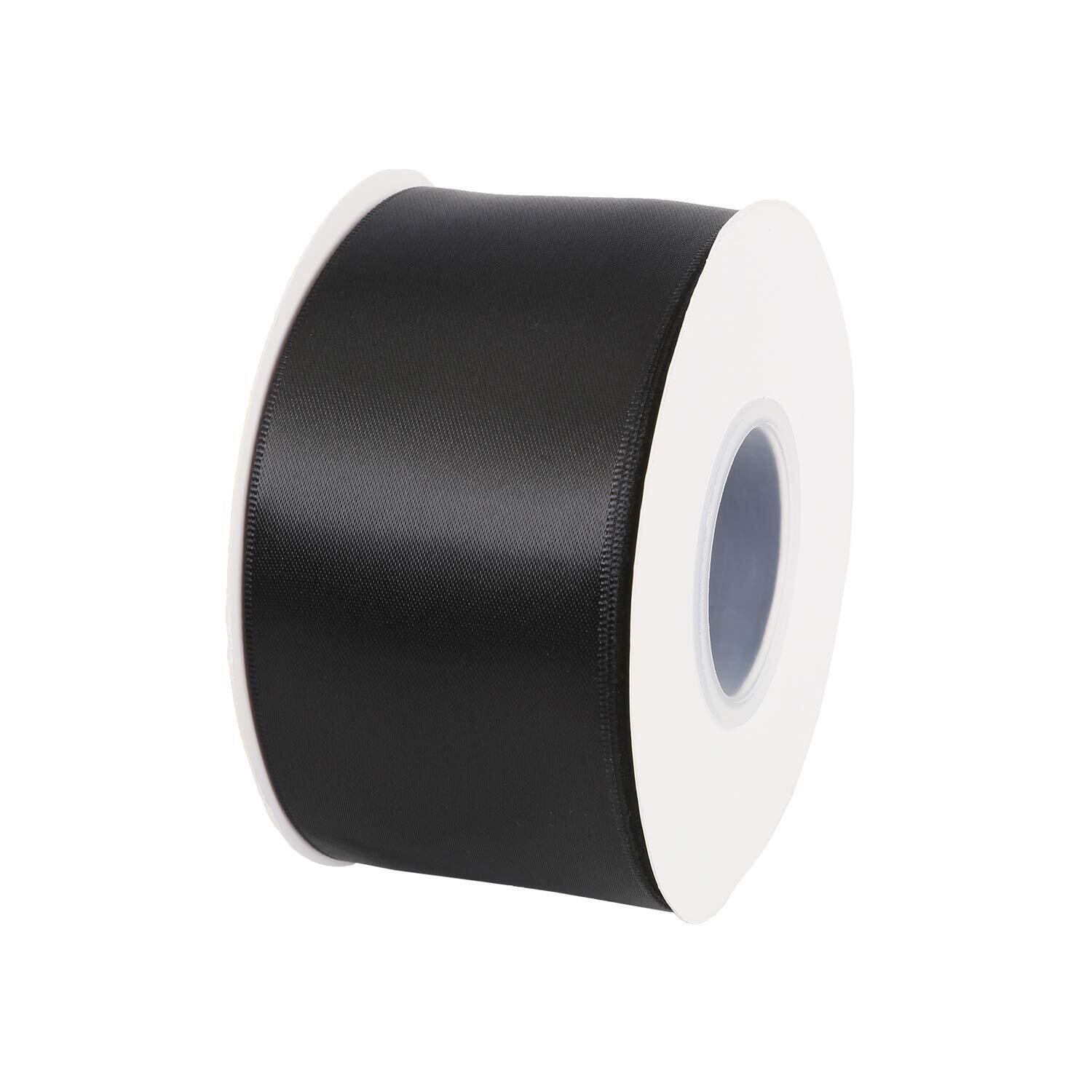 ITIsparkle 両面サテンリボン 幅50mm×22M巻 手芸 服飾 ラッピング ちょう結び リボン #030-ブラック