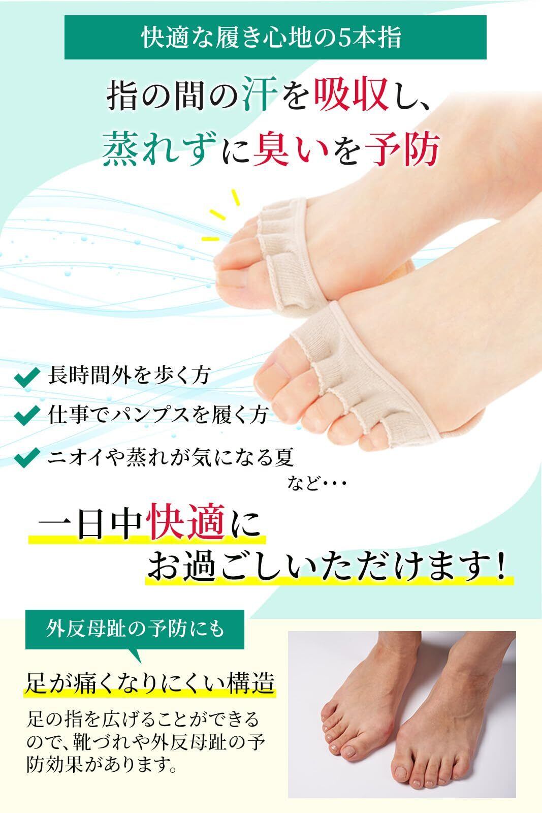 【ニオイを撃退!】指の間の汗をしっかり吸収!ニオイや蒸れが気になる夏の足にピッタリです。長時間外を歩く営業職の方、オフィスでパンプスを履く時間の長い事務系の方も一日中足裏サラサラ