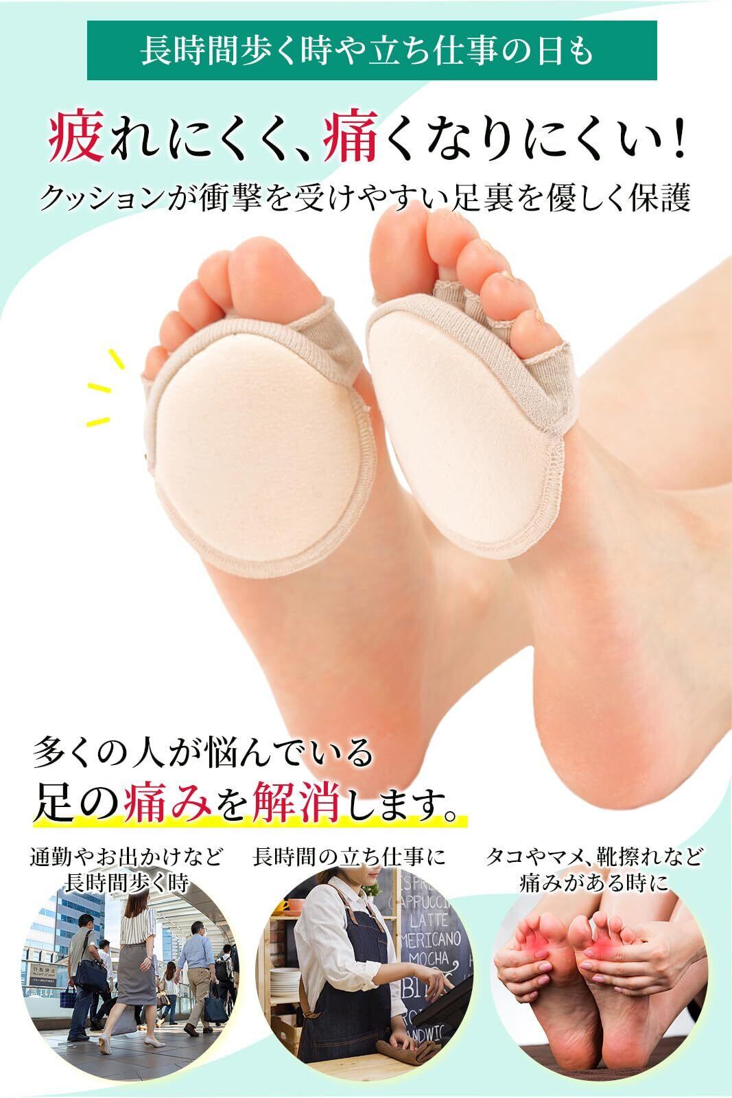 【足裏の保護に】足裏のクッションが衝撃を受けやすい足裏を保護。長時間歩く日や立ち仕事が続く方におすすめです。魚の目、タコ、マメ、靴擦れを避けたい方に。