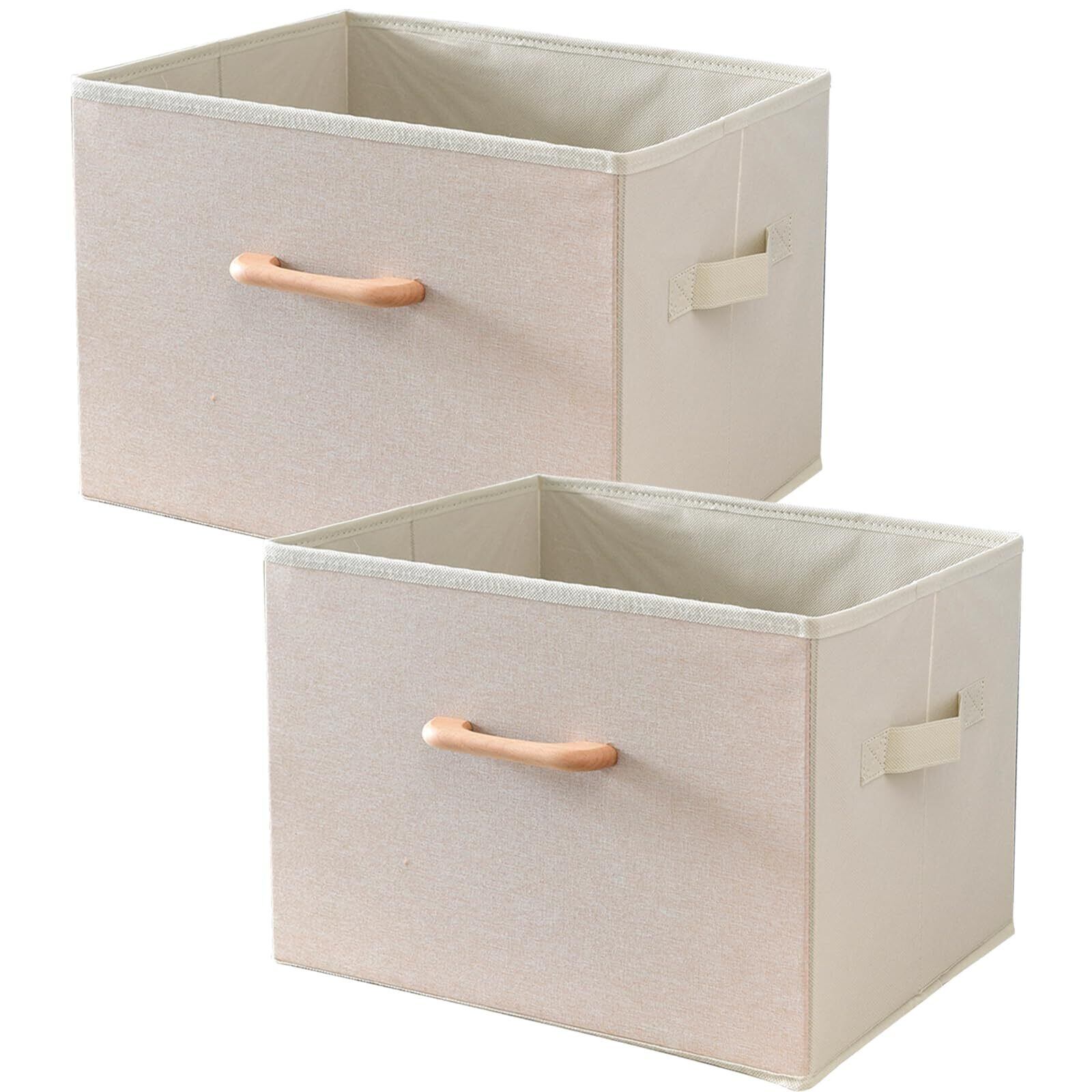 山善(YAMAZEN) 収納ボックス 2個組 木製取っ手 前面麻風生地 カラーボックス対応 幅38×奥行25×高さ25cm 完成品 ベージュ YTC-MSB2P(BE2)