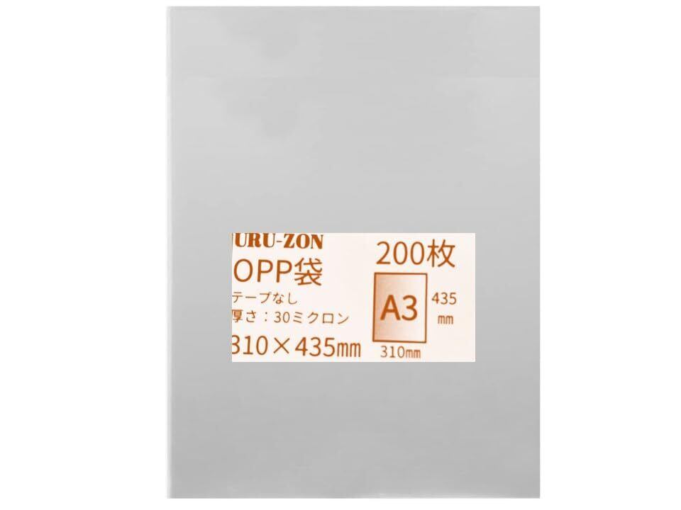 【在庫処分】URU-ZON 透明 OPP袋 テープなし 30ミクロン厚 A3 310x435mm【200枚】
