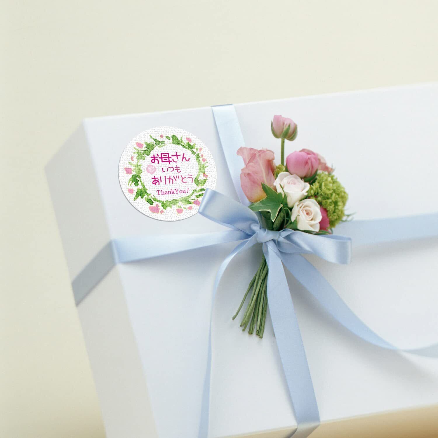 ギフトシール リーフ柄 直径3.2cm 50枚(5シート) 日本製 (お母さんお父さんありがとう)