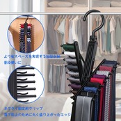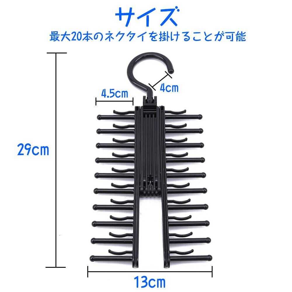 ネクタイハンガー ネクタイ収納 20本掛け 滑り止め付きタイホルダー ベルトハンガー 多機能収納 クロス機能 360度回転 (1本入ブラック)