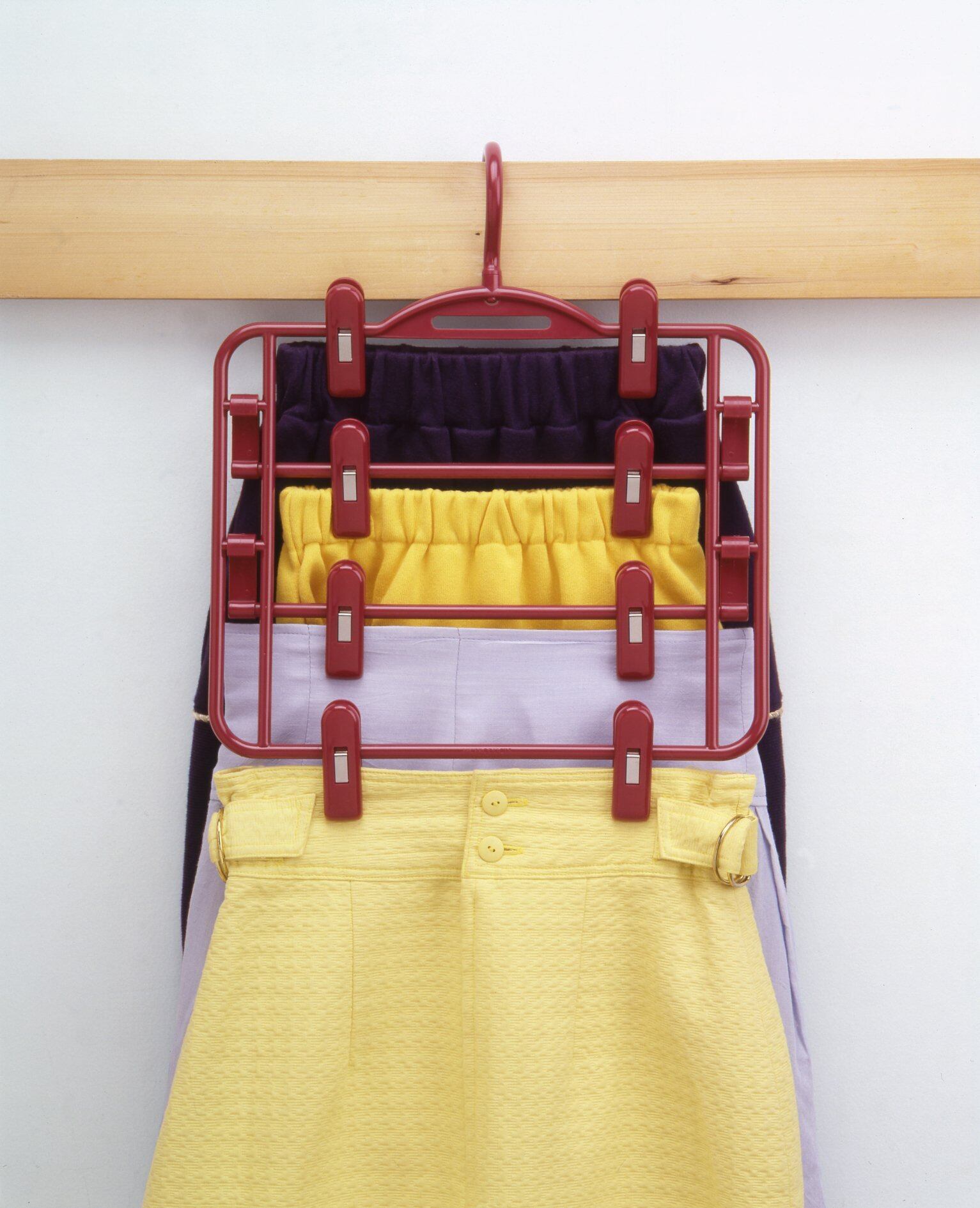 サワフジ 洋服ハンガー スカートハンガー4段 ブラック 幅400mm 日本製 跡がつかない 省スペース クリップ すべり止め付 パンツ ズボン NB-04