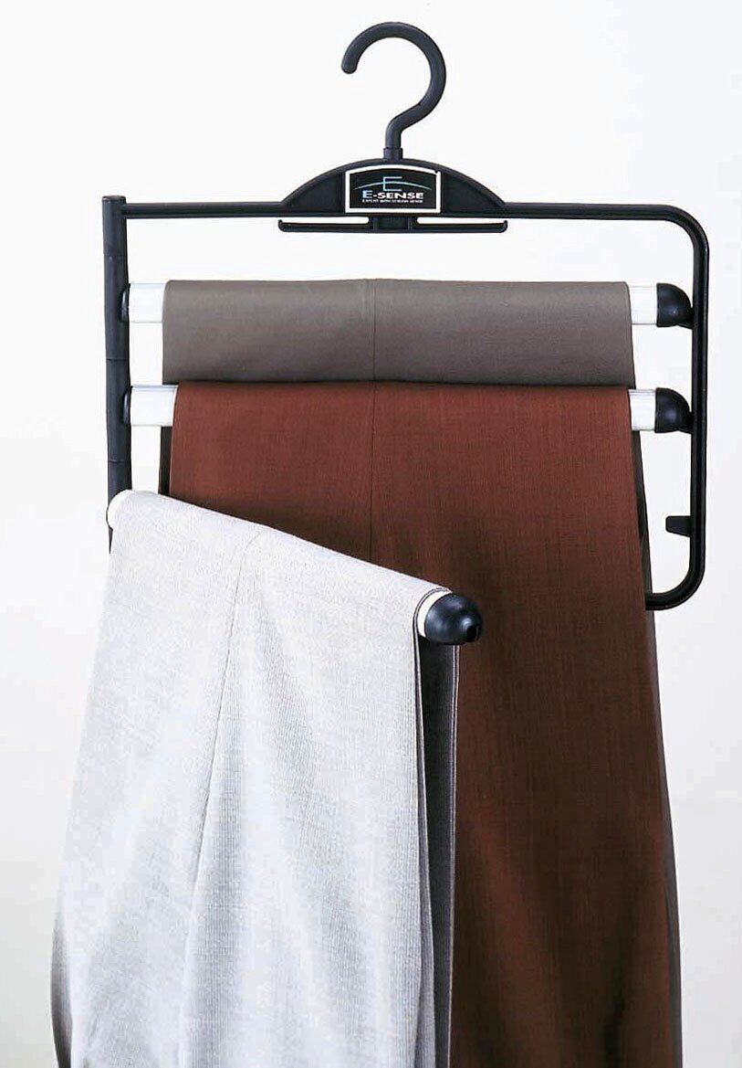 【数量限定】サワフジ 洋服ハンガー E-SENSE スラックスハンガーEX3段 ブラック 幅368mm 2本組 クローゼット 吊るせる ズボン パンツ ジーンズ 極太バー 跡がつかない すべりにくい 省スペース スイング式 掛けやすい SLEX-03-2P | わくわくSHOP