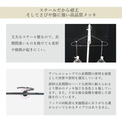シンプルデザインでインテリアにも良く馴染み、錆びに強く丈夫なブラックニッケルメッキ仕上げのハンガーです。