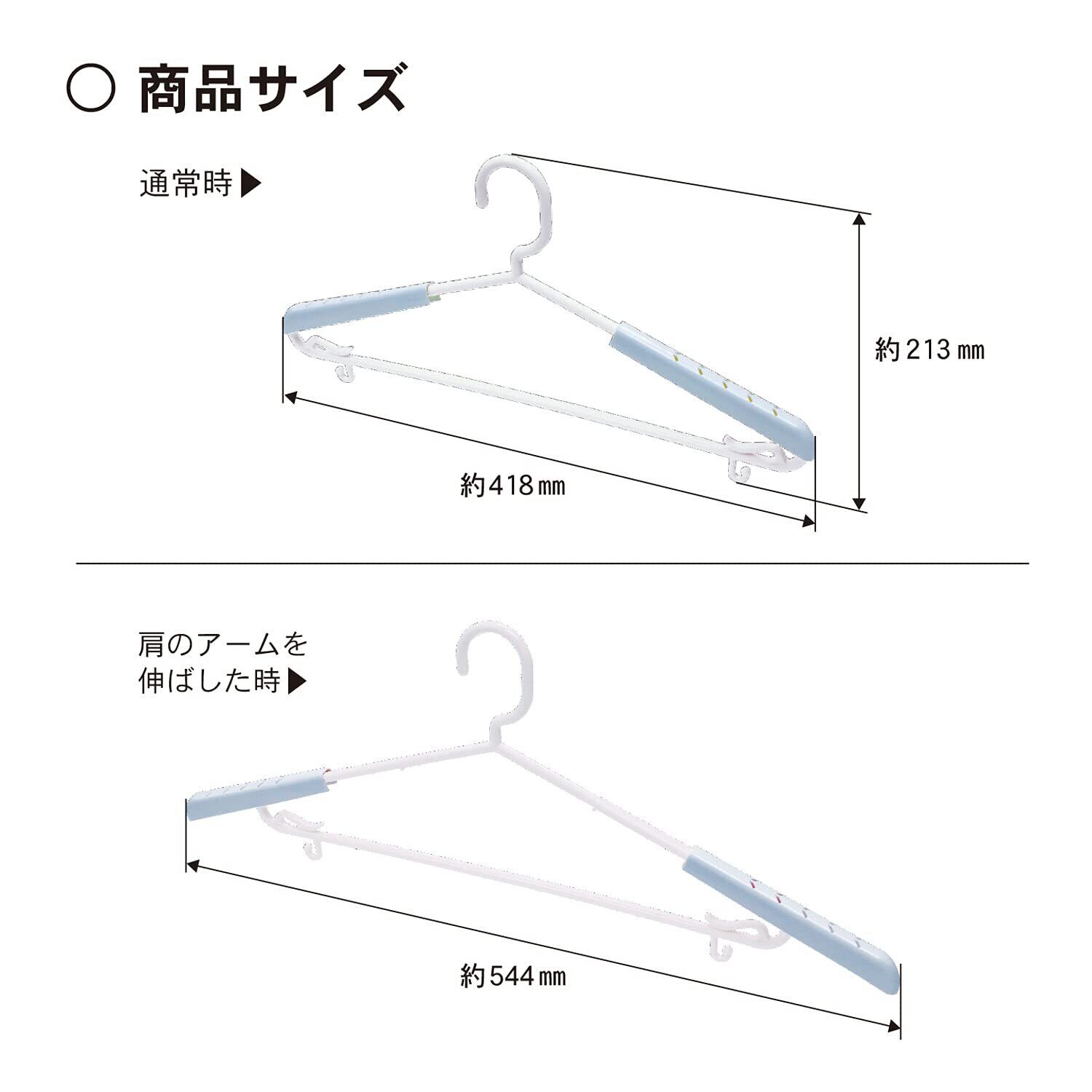 スライド式のアームで肩幅を調節できるハンガーです。伸びるアームを衣類にぴったりと合わせられるので、型くずれを防ぎ、袖の下が早く乾きます。日本製です。