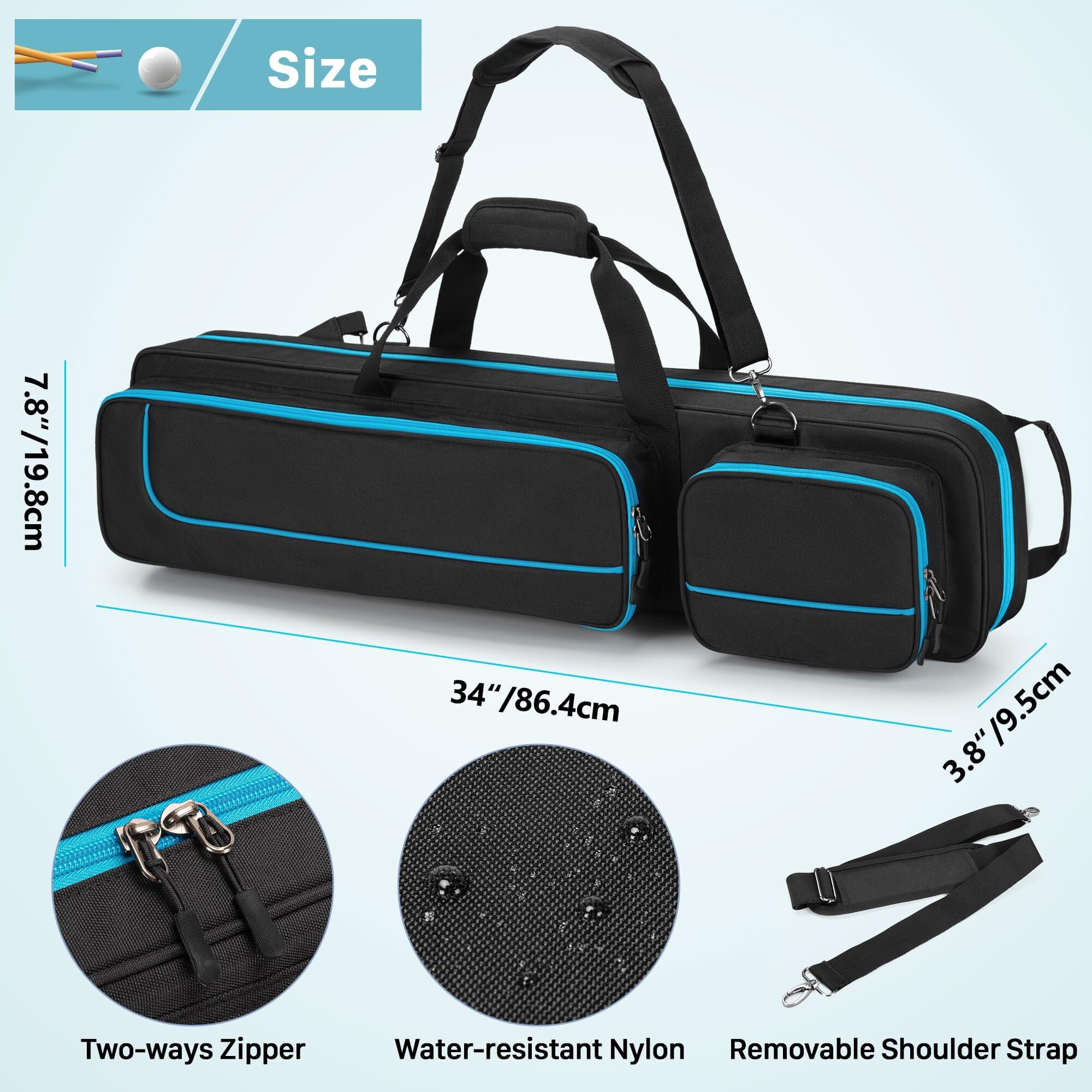 【寸法】寸法:86.4CM*9.5CM*19.8CM。プールキューバッは、アマチュアとプロの両方のプレーヤーがプールキューを保管および輸送するのに適しています。ビリヤード愛好家へのギフトに最適です。