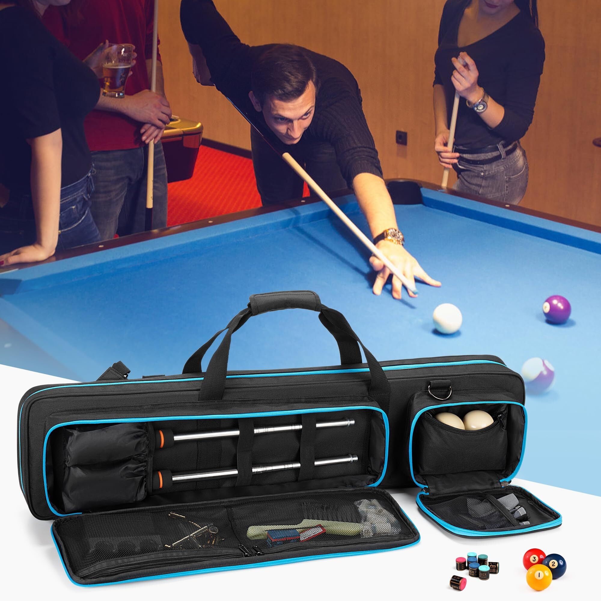 GOBUROS ビリヤードキューケース プールキューケース バット4本とシャフト4本収納可 プールキューバッグ プールキューケース 1/2ビリヤードキューバッグ