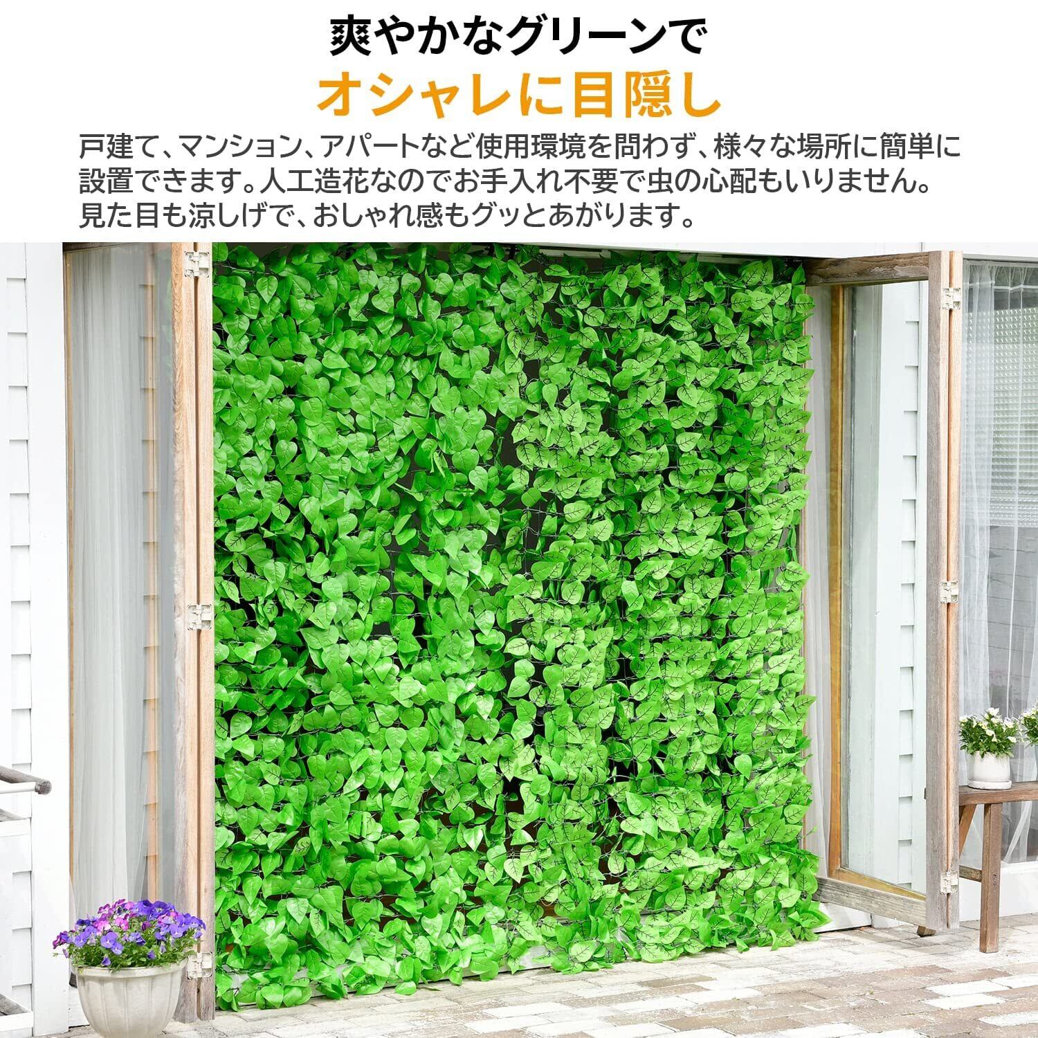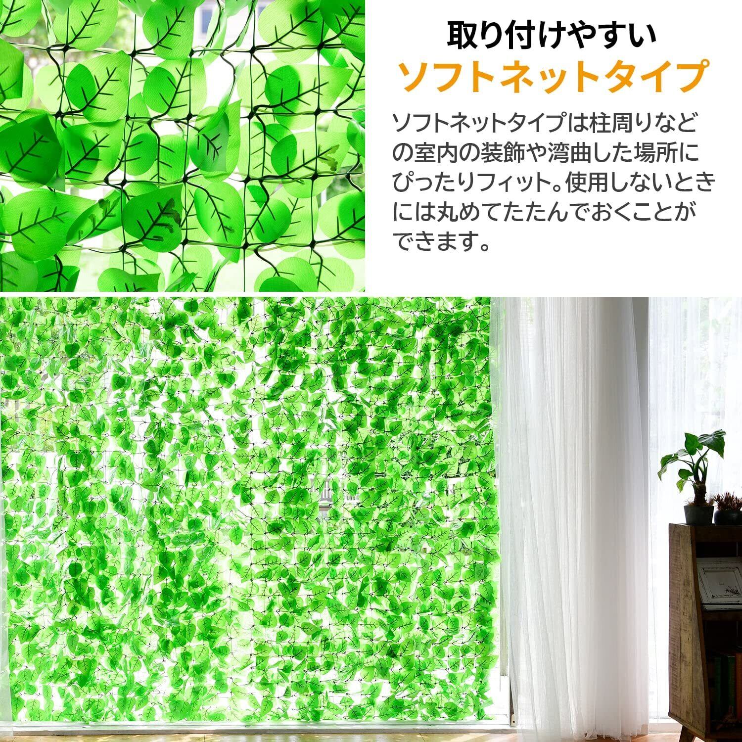 【特徴】目隠しが出来るフェイクグリーンです。湾曲した場所や柱回り等に取り付けやすい仕様のソフトネットタイプです。自然なイメージで上品に目隠しが出来ます。フェイクリーフなので虫の心配がなく、育てる手間も不要です。
