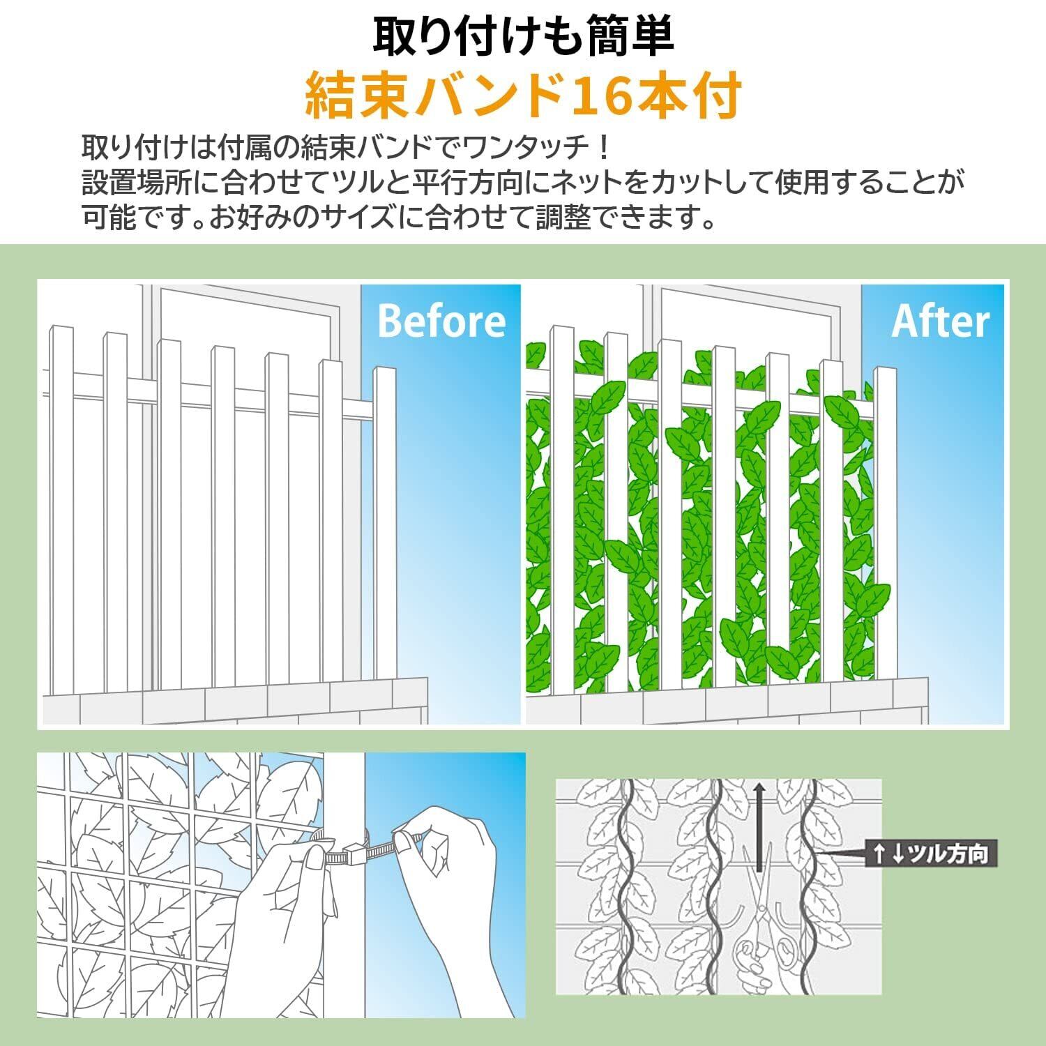 【仕様】本体サイズ:100×200 cm/重量:約1.2kg/素材:ポリエステル、ポリエチレン/カラー:ライトグリーン/付属品:結束バンド16本/ソフトネットタイプ