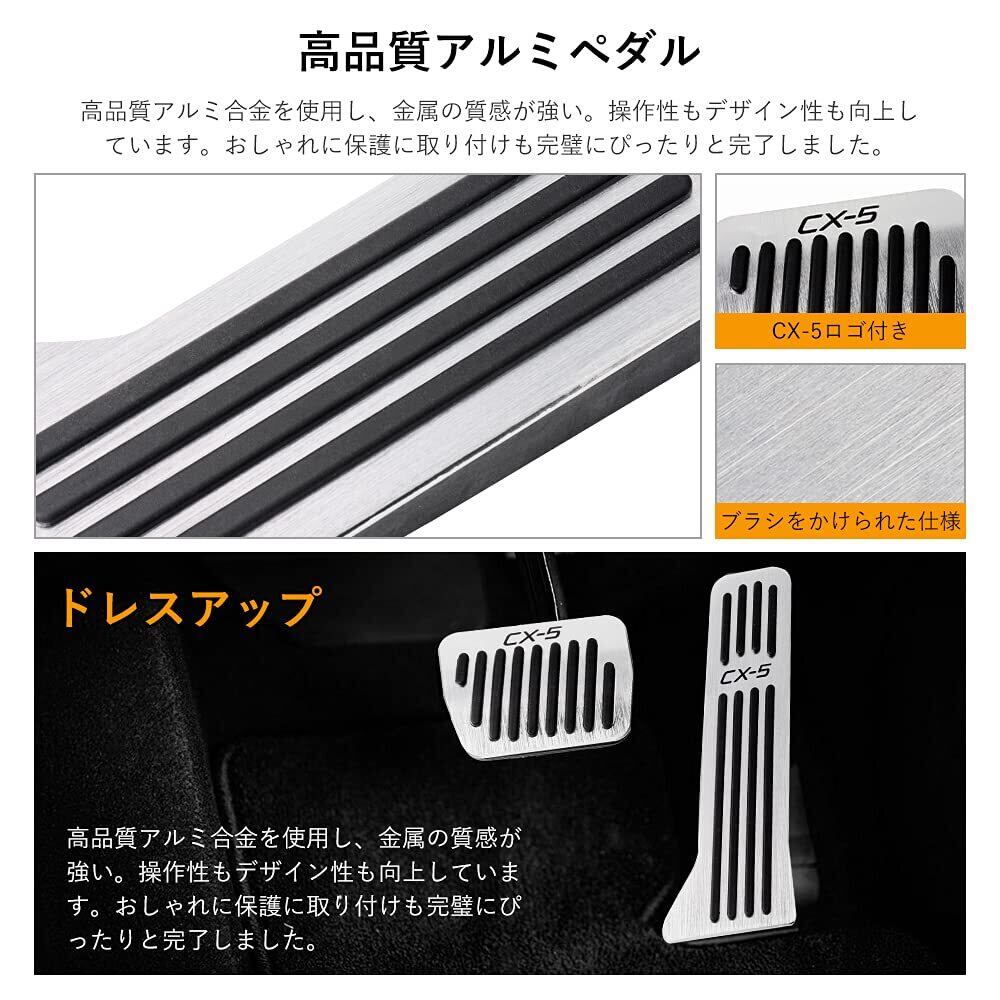 FUTWOD マツダ CX5 アルミペダル ペダルカバー MAZDA CX-5 KE KF系 ペダル アクセサリー カスタマ パーツ スポーツ 滑り止め 内装 ブレーキペダル アクセルペダル 工具不要 アクセル ブレーキ フットレスト 3ピース