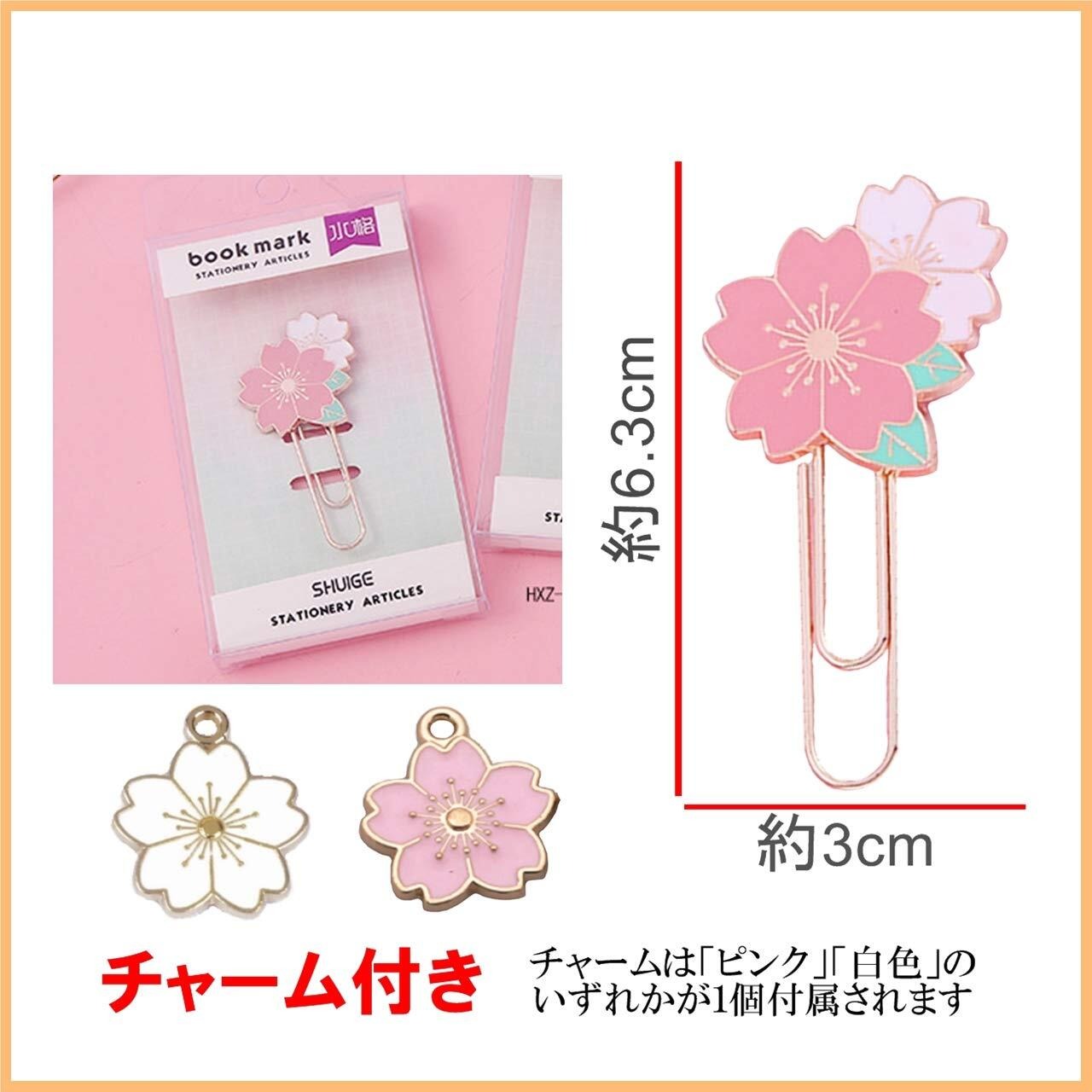 桜の花2輪がモチーフ・ブックマーク(しおり)+桜のチャームトップ1個(紅白のいずれかがが付属します。)